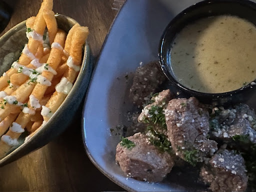 Let's start with the food. We had 4 in our party and everyone ordered something different, plus we shared 2 appetizers, because we wanted to try as much of the menu as possible. Starters were Street Corn Deviled Eggs (Qty 4), which did taste exactly like authentic street corn, and the chips and queso with a beef add-in. It was among the best queso I have ever had! Next, I got the Watermelon Salad, which had goat cheese, candied pecans and agave drizzle. I would have licked the bowl, if it wasn't impolite. SOOOO good, and this dish will bring me back again and again. My entree was the Bistro Filet Tips, which came with a creamy garlic butter and crispy fries drizzled with garlic aioli. I ate until I hurt because it was so tasty! My folks got the Steak Fajita Platter and the Double Fusion Burger and both reported that their food was excellent. My husband got the Spanish Lasagna, and he usually dislikes Latin food but he cleaned off his entire plate.