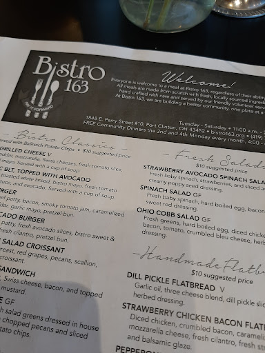 Read moreThis is a pay it forward restaurant with suggested prices which will provide a meal to anyone. Serves lunch 5x week and community dinners 2x month. Has space for special events and catering. Servers are volunteers. Had a great lunch 2x soup tomato basil and tuscan bean, a burger (yummy and savory) with chips, a grilled cheese sandwich, a flatbread with chicken, bacon, strawberries and balsamic glaze. Food was great and servers were attentive. Wish I had room to try dessert. This place is in Sutton Center...strip mall right before 163 entrance to route 2 Where Ottawa County offices are. Worth a drive to do a good deed ..they also have other sandwiches, flatbreads, quiches and salads...many items are local produce so...