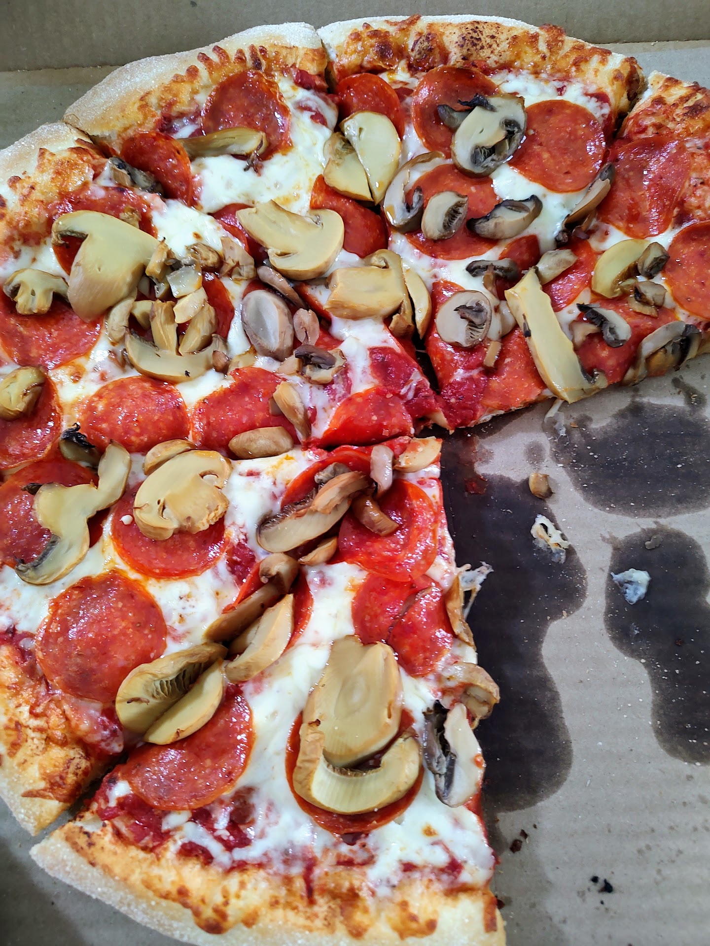 Read moreOrdered a deluxe pizza, boneless wings and a salad at about 7:45 pm. Used the online ordering. By 9 pm there was no update so we called to make sure they had our order. When they answered, I explained that I ordered online and wanted to make sure they received our order and what the status was. They hung up on me! Then I tried calling back and they wouldnât answer! I waited until about 9:30 and tried calling again. This time someone else answered and said it went out with the delivery driver at 9 so it was on the way. The driver finally shoes up about 10:15. Our pizza box was smashed down flat, all the toppings were stuck to the top of the box and was obviously cold. The driver pretty much said oh well, they were busy. She said they would credit half our money back and she left. I paid with a credit card online and gave a $10 tip online. They never credited anything. We will never order anything...