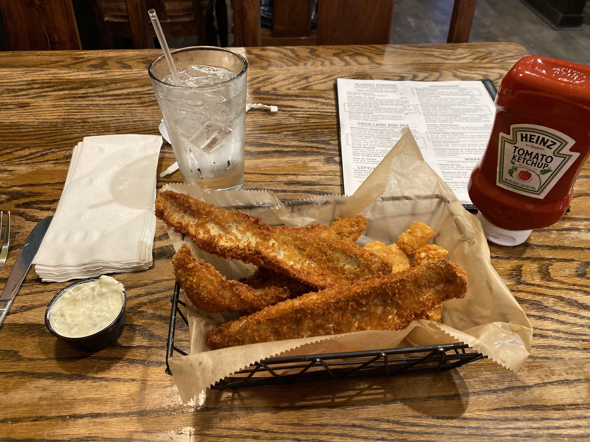 Read moreI asked you young woman working at my hotel for a dinner recommendation, and she recommended this place. I arrived, and there was an event going on outside with the street closed, and a live band with lots of people. Not wanting to party, I decided to go inside. It wasn’t super busy with maybe half of the tables full. A young woman carrying a bundle of wrapped silverware seated me, but before I sat down I saw that the table hadn’t been wiped off, so I asked someone to do that. Even after it was wiped off, it wasn’t in the best condition. The finish was coming off, and the surface was still a little sticky. I found the atmosphere to be loud, but I suppose it wasn’t inappropriate for an Irish pub. My server came by and told me that he would be back after he took care of the large table that was nearby, and then if you want. It seemed a long time till he came back, but I think he may have been the only person serving tables. There was another young man milling around, but I think he was the bus boy. I found the menu a little pricey. What isn’t these days? The local perch dinner was $33, but it looks like the best option on the menu. It was served with their homemade potato chips and coleslaw, but I traded out the chips for tater tots. I can’t say I was super impressed. The fish still had the skin on, and it was kind of tough along edges, and everything seemed greasy. The tater tots were the frozen variety, and nothing to write home about. I’ve had far better better perch before. I was hungry and tired, so I ate it. By the time my server made it back to me I was ready for my check. I don’t think I would go back here personally, but I wouldn’t say the place...