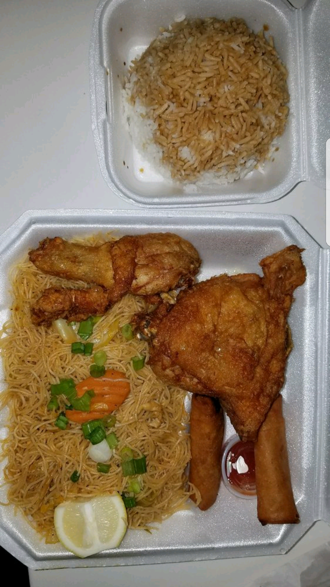 Excellent pancit. The lumpia was just o/k. I still don't understand why Filipino restaurants use Chinese egg roll wrappers instead of genuine Filipino lumpia wrappers?? It makes all the difference in the world. If I wanted an egg roll, I would go to a Chinese restaurant and buy an egg roll. We got there about an hour before they closed so couldn't try the adobo because all of that food was already sold out or too late to cook more. Now lets get to the chicken. The chicken is cooked to order. It is broasted which means it's lightly coated with batter and deep fried in a pressure cooker. This seals the juices in because it crisps the outside of the chicken as soon as it's dropped in. It takes about 15 minutes to cook the chicken so if you think you're gonna order and walk out the door with your food, think again. Filipinos have cooked chicken this way forever and it is amazing!! All you need is a few pieces of this chicken, some pancit and steamed rice and you...