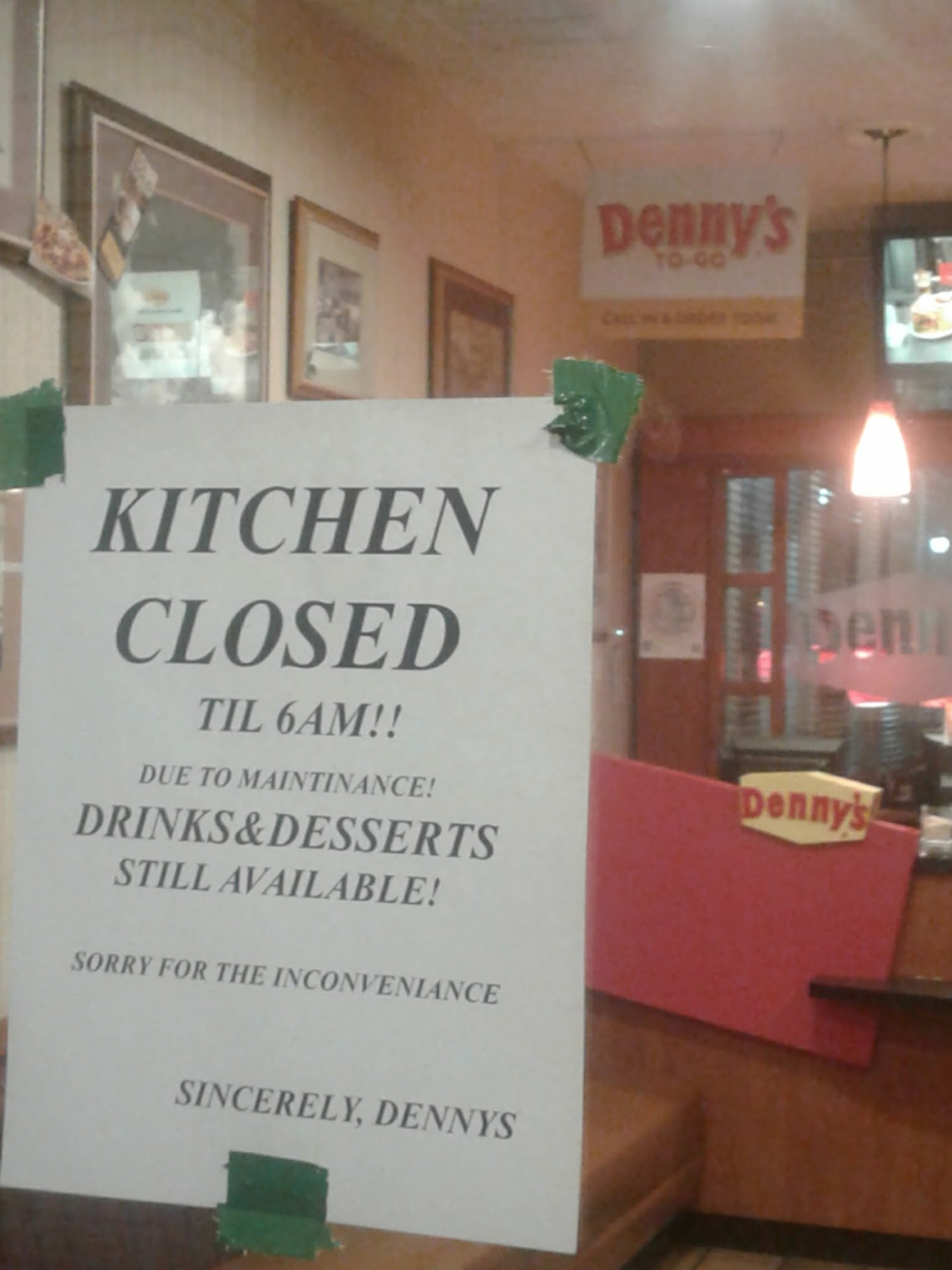 Read moreSo-so. Not really that good. I ordered the tbone steak and eggs medium well and it came out rare. The waiter didn't get back and it wasn't busy until after my significant other had already finished eating. The Dr. Pepper was missing bubbles and syrup so switched to hot tea which came with meal and this place just wasn't up to par as far as Denny's go. I'll try them again later. As we were leaving the waiter was shown that the steak was rare and he did offer to make a fresh one but I was kinda burnt out on eating since I already ate my fries and eggs and English muffin and well it was just too late in the eating phase to even want it redone and wait for it. They did not offer to take the steak off the bill which we should have asked them to, but nevertheless they weren't inhospitable or rude just slightly neglectful and not thinking about the cost of the steak meal (almost 20.00) and not being able to eat the steak. I don't like to complain it just doesn't change things but I'll try them again if we get the urge to go to Denny's in the future. And hopefully it will be better. Place was clean enough and the waiter was nice enough just not very service attentive and didn't even look at the steak nor ask us how things were until we...