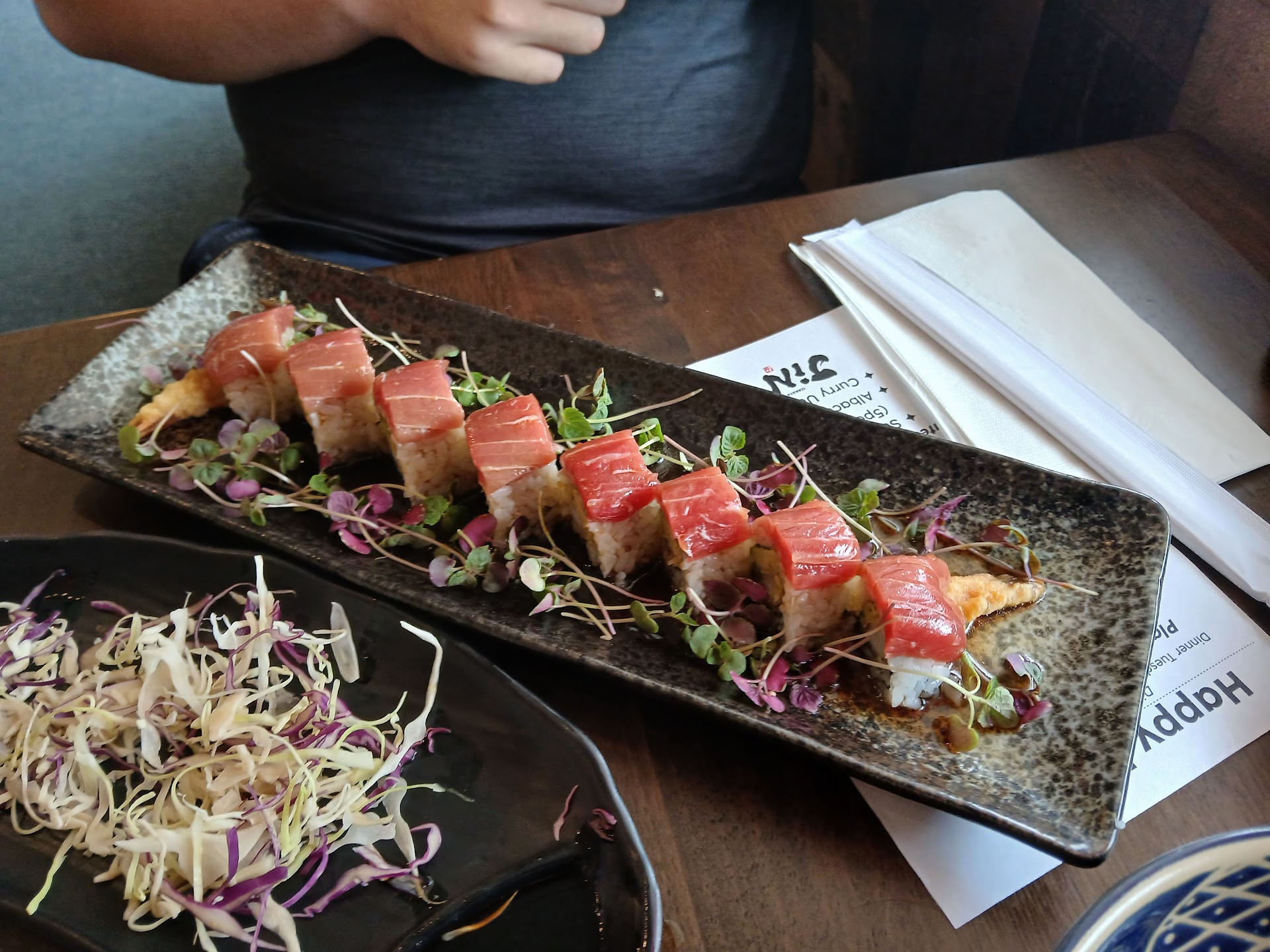 This restaunt is an Izakaya, a type of restaurant often found in Japan where plates and mains are served in a comfortable bar like restraunt, perfect for a drink and bento box at the bar, or a family night out where dishes are shared around the table. Keep in mind that this is a Japanese restaurant opposed to a standalone sushi bar, and the wide range of offerings, many of which are hard or impossible to find in the area, make this a very unique and compelling addition for anyone who likes great Japanese food.
