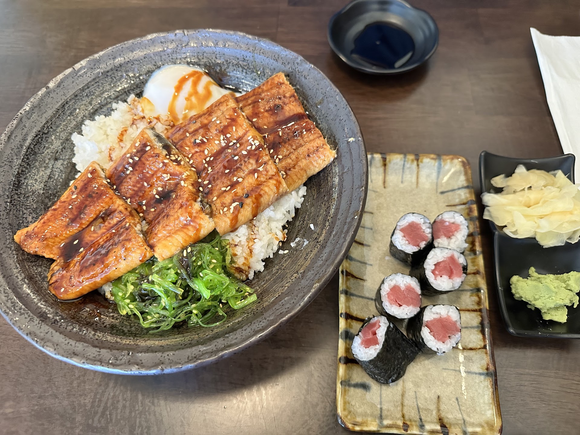 Read more(June 2024) Very authentic & very delicious! Extremely generous portion on the eel tomago donburi, perfect for sharing, & the poached egg was perfectly cooked. The sashimi & tuna roll was very fresh & delicious. The fry on the squid legs were perfect, a light & crispy batter, the slightly spicy dipping sauce was also great. Izakaya Jin even has a happy hour from 5-6:30pm (I believe Tuesday to Saturday? I wish I got a picture of the Happy Hour Menu). The owner was very friendly; it took a little bit of extra time before getting our dessert (the yuzu & matcha cheesecake set), so he offered us hot tea while we waited. The cheesecakes w/ the honey & fruit were so good & beautifully presented. There were so many items we wanted to try, can’t wait to come back. So lucky to have this restaurant so close to us!