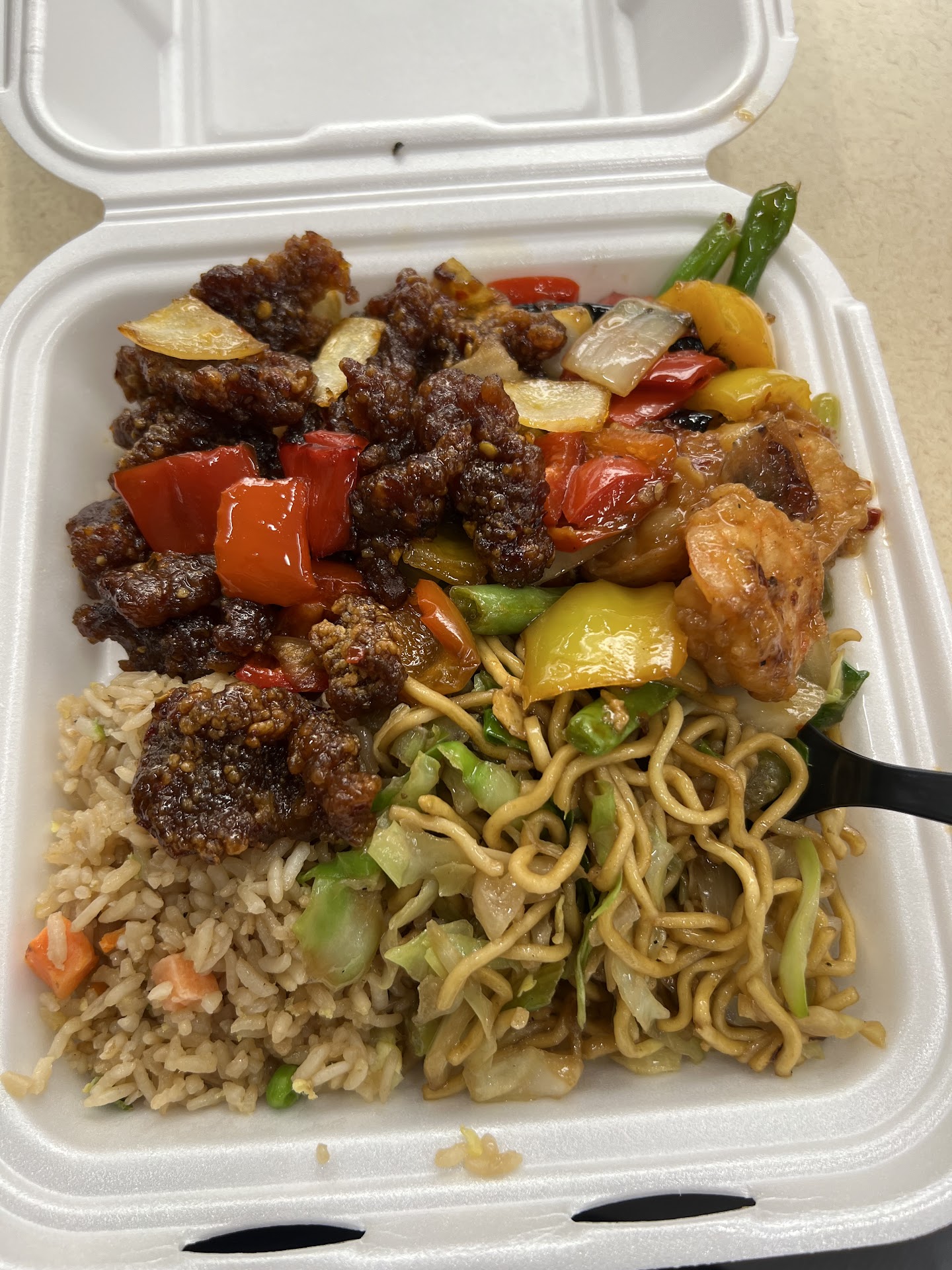 Read moreCame in at 5:15 and they had half a serving of old, fried rice and 1/4 serving of noodles, some orange chicken and the saddest looking serving of broccoli beef. Everything else was cleaned out and put away. I asked if they would make new stuff to order. They said they only had what was left out since they close at 6. You would think that they would start the final clean up after they close but they essentially close out the store at 5pm (prime dinner time) and try to sell...