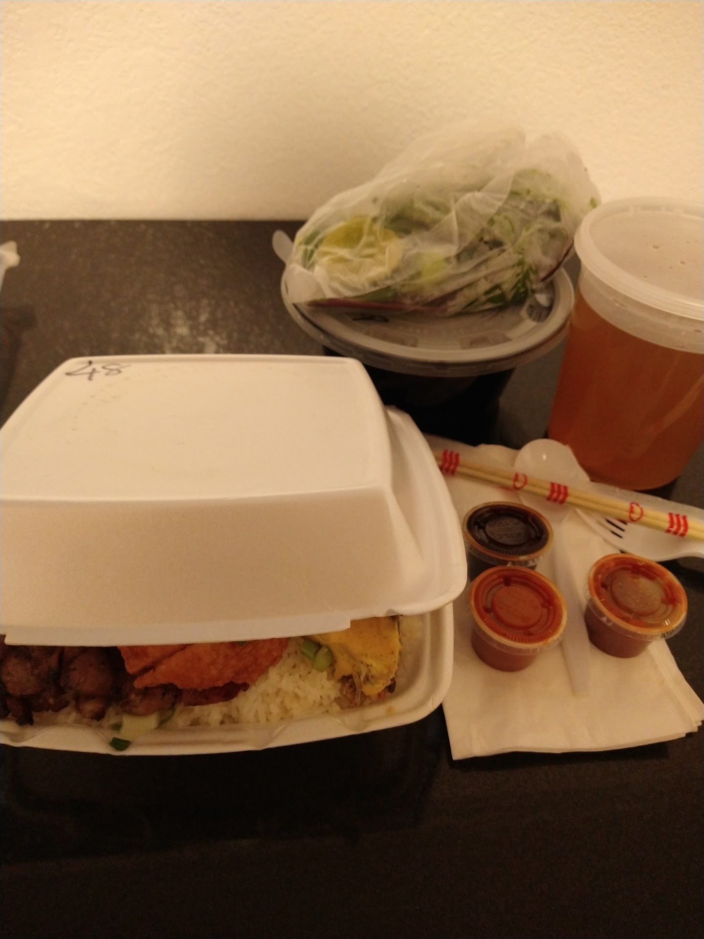 Choose from 'broken rice' dishes topped with grilled meat, fried rice dishes, rice vermicelli, pho and more. Prices around $10-$15 per plate or takeout container.