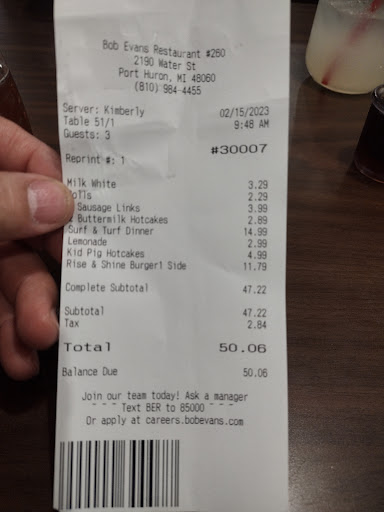Read moreAfter traveling over 1700 miles, we were looking for more of a quality, home-cooked meal. It has been a number of years since my last visit to Bob Evans (there are none anywhere near me in Texas), so this was going to be a nice change. Our waitress was very kind and courteous and the meal was good with nice portions. Their banana bread rocks, so make sure you order it. The price was fair and they honored military, so that is a major positive (Thank You Management 😊). I remember them having more to their bakery and items to buy in their store section. However, there wasn't much to look at. I don't know if that is a store issue or if the company has scaled back their assortment. We hope that isn't the case though. The nostalgic look and country store feel from past visits was another reason we...