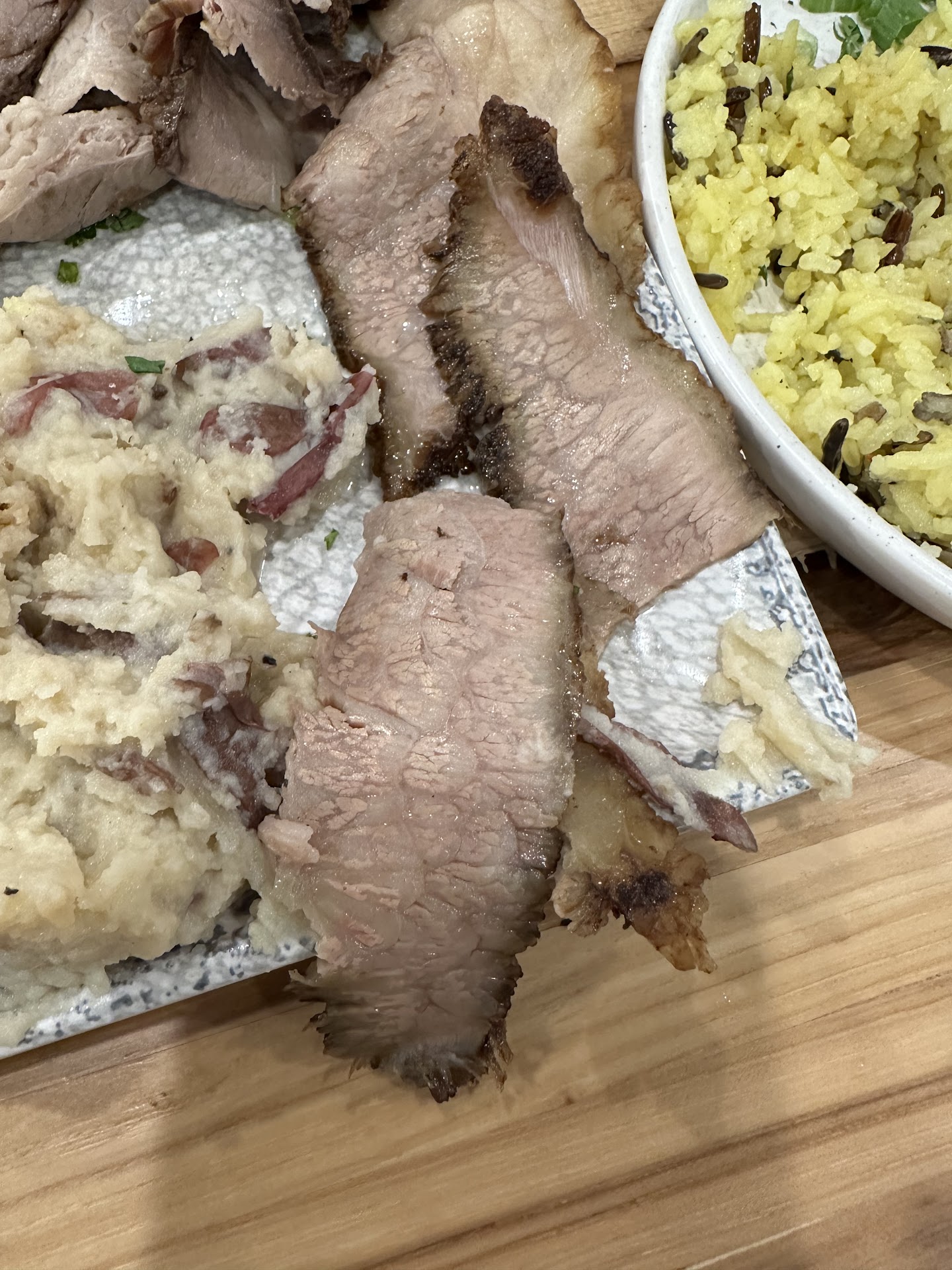 My husband got the smoked brisket sandwich. It was really good. The smoke on it seemed a bit light and the brisket was a bit dry. But that might be due to it being cut into before it had time to rest long enough maybe? Or perhaps it's due to how thin it's sliced? Either way the condiments make up for the lack of juiciness. He really liked his sandwich but the salmon was so good he was jealous of my meal!