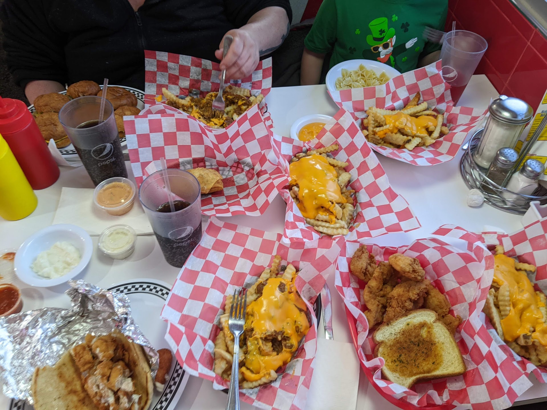 Read moreFirst time here since the reopening, at first glance, i thought the menu was kinda small, but the food on the menu fits perfectly with a small town burger diner, I ended up spending more then I planned but it was because we each wanted a lot of extras. What I wish i knew was the proportion sizes, if I knew how much food you got, we could have easily ordered much less and shared. We each ordered a small fry, (a few chilli cheese and one only cheese) and when they came out the portion was huge, we probably could have ordered a large and shared between 2 adults and 2 kids.everyone thought the food was great, and as an added bonus, our youngest kid is super picky and wanted Mac and cheese, which they don't offer, but the waitress told him she could have them make some plain pasta and add some cheese sauce, he then decided he just wanted the plain noodles (bowtie pasta) and a side of cheese which they happily accommodated. I'd call that above and...