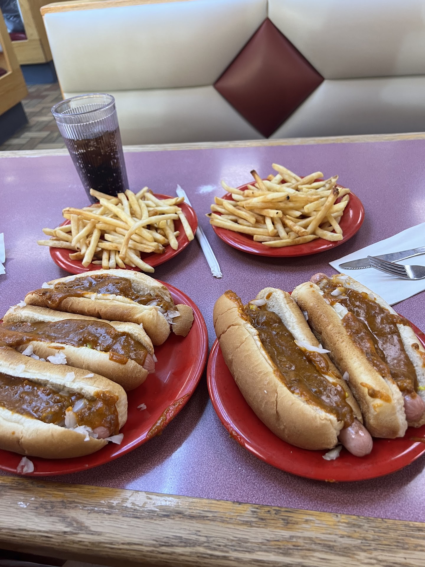 We chose the coneys . The waitress accomodated us buy just giving us a few to eat and then when we were ready to leave, she had the rest packaged up . We freeze them. Fries were excellent. Added our picture after our drive to Banner Elk ,NC , our leftovers . Definitely would come to...