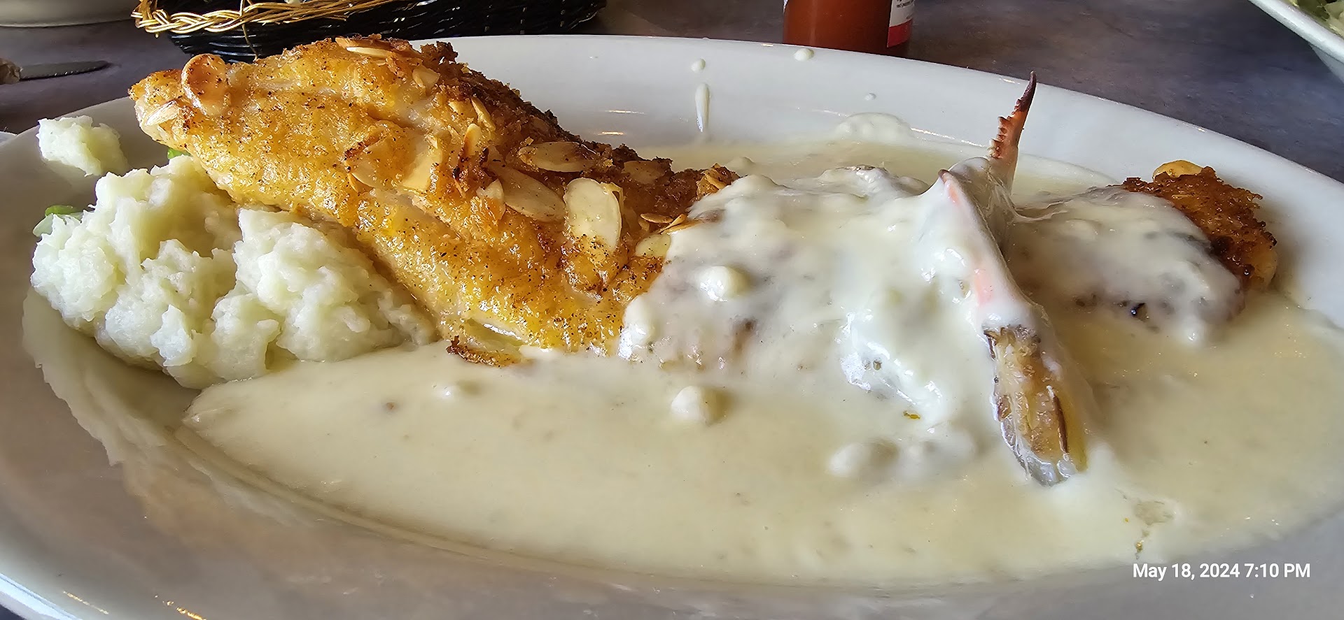 Dissecting what I got for $99 (I tipped 20% although I probably shouldn't have) - 7 anemic chicken tenders, a lot of fries, 3 soft drinks, 12 old shrimp, a piece of red snapper, 2 broccoli florets, and some not-so homemade mashed potatoes. 2 adults left without eating anything. If you shoplift $10 from a store, you can be arrested. If you steal from people at a restaurant, that must be good business. Please don't be a victim of...