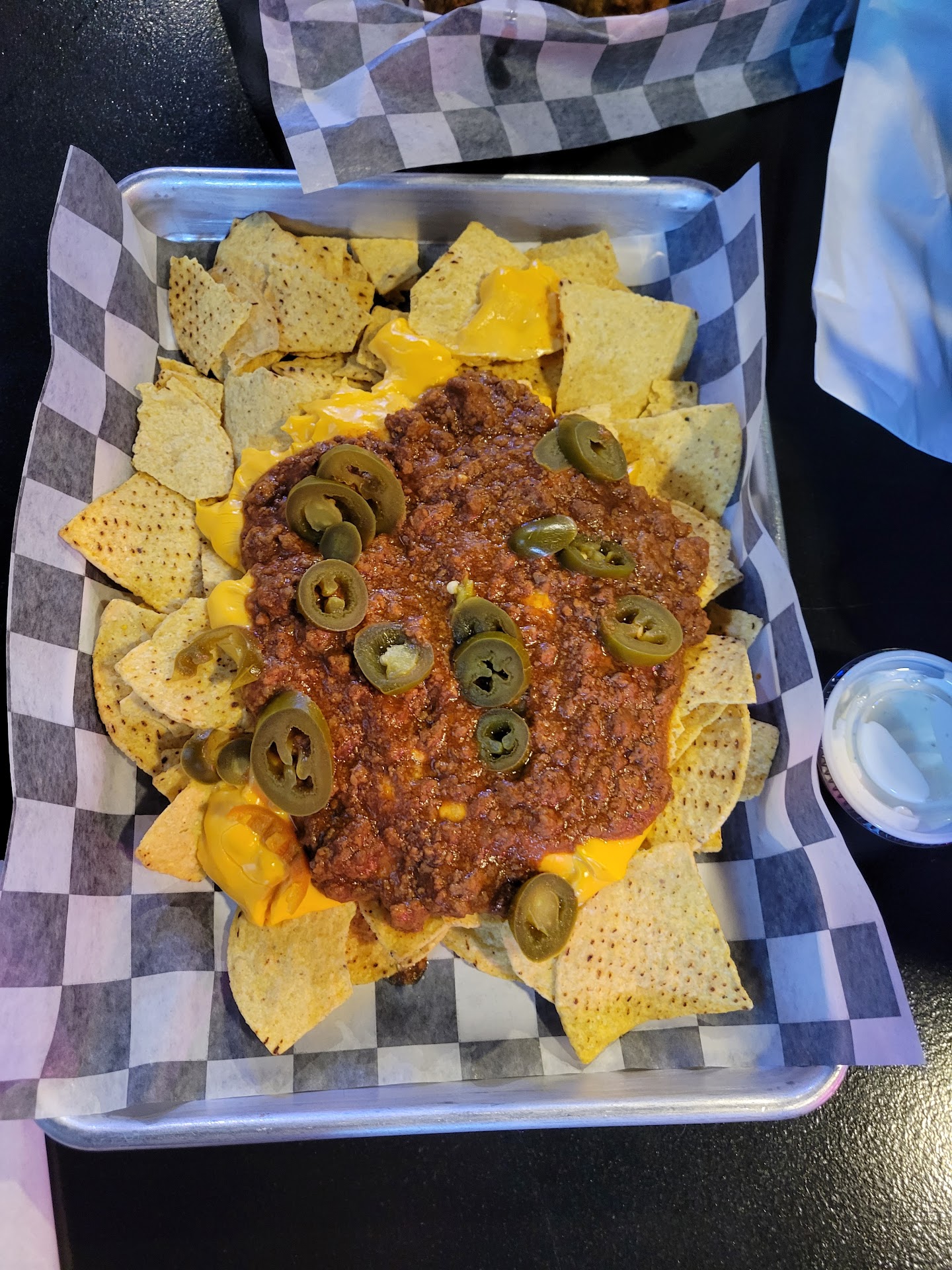 Read moreThis is a great place, but..... The food and the service were great. But probably not the first choice for taking the grandkids. Don't get me wrong, I have no complaints at all, and I'm glad we stayed. The wait staff were extremely friendly and welcoming and at 5 o'clock on Saturday afternoonit wasn't too crowded. We ordered a nice mix of things, and were not disappointed with any of the choices. The Frito pie was the biggest I've ever seen, the loaded nachos had just the right amount of heat and the chef salad was on point. But the real star of the show was the pulled pork burger and as strange as it sounds, the French fries. Would definitely be a regular spot for watching the game with the boys when I visit...