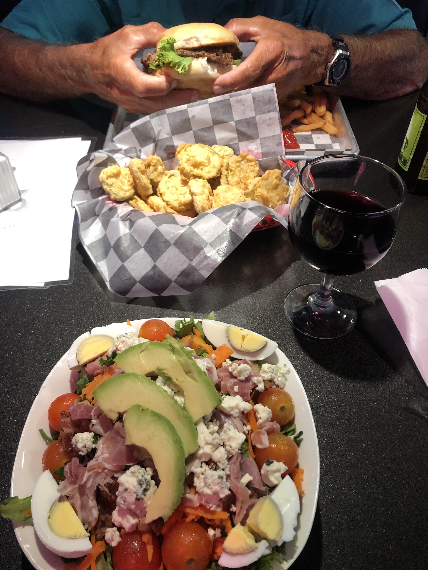Went on Saturday eve of Memorial Day weekend. Was busy when I got there but, emptied out and closed up by 8pm. I was reassured I was not holding them up, it was just quiet after a long busy day. Drink was a mango margarita on the rocks, tasty and not too sweet. Got the Chef salad, super size and fresh for $10.99. Was easily shareable. The seafood boils were a weekend special. I asked for no seasonings except butter and while too much butter 😅, it was fantastic. I had the 1/2 lb of shrimp ( looked like more) and crab legs. I also added a potato and corn, both good size for the up charge. My server Aubby was great, attentive but, not overly. Good music, multiple screens for sports, small arcade/ gaming area. Outdoor covered screened in area. Bar seats as well. Parking easy but, maybe challenging if super busy. However, may be more parking that I just didn't see. Definitely a repeat needed the next...