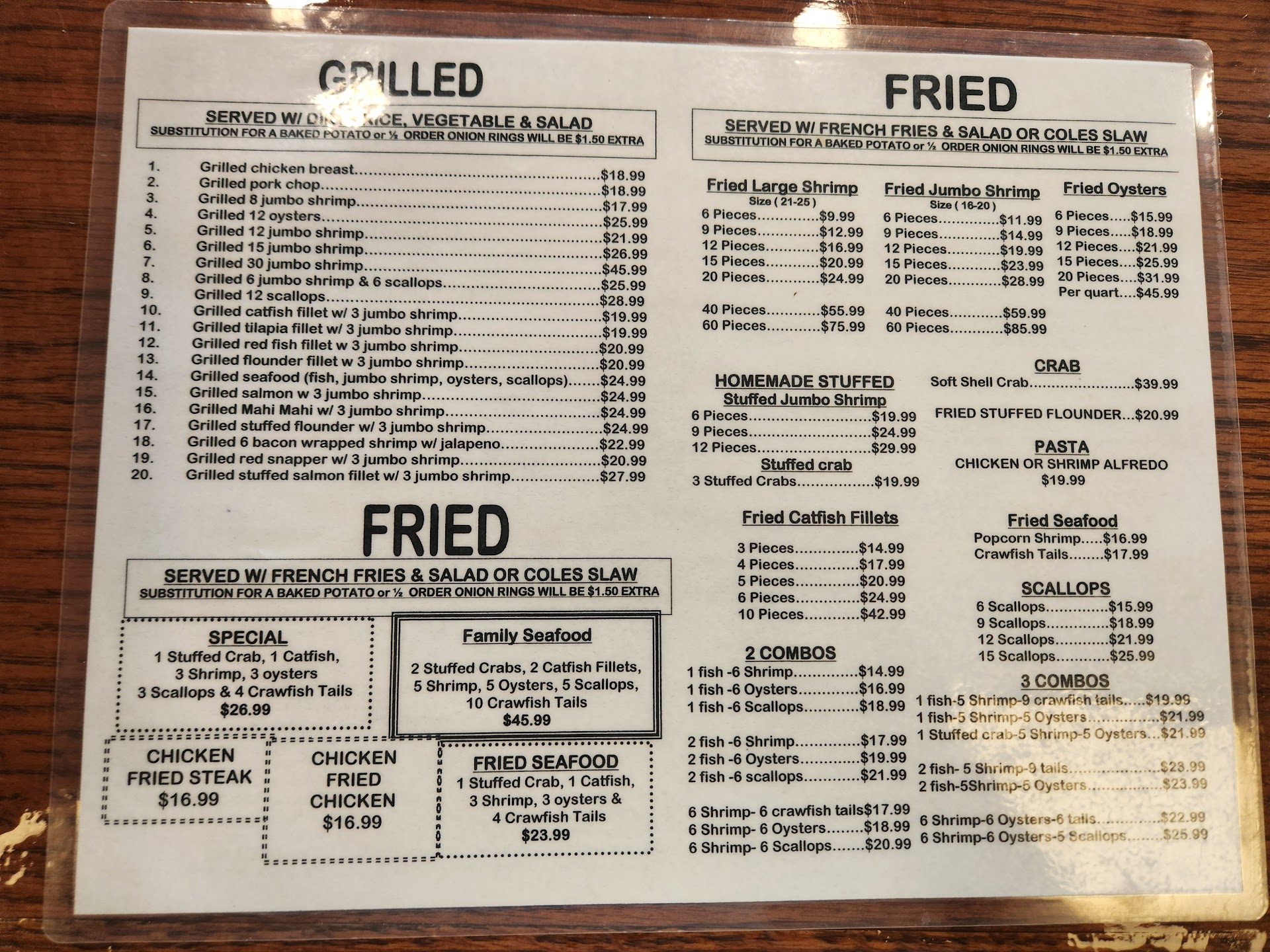 Read moreStaff didn't know anything about the food or how it was prepared. Asked the waitress how the grilled oysters were prepared. She told us they were fresh and grilled on the half shell. Well, my wife's grilled oysters came out in a sauce.... straight on the plate. No shell, and honestly, the worst oysters I have ever put in my mouth. She had two and lost her appetite. I got the fried seafood platter with fies (nothing had any seasonin), and instead of the Cole slaw or salad, asked for the substitute for half order of onion rings that were only supposed to be $1.50 more. Got the bill and was charged $5.99 (full price) for the substituted onion rings. Questioned the extra charge and was then told that you can't substitute the onion rings for anything but the fries. Asked the manager about it and she was completely unwilling to make the waitress' mistake fore not telling me this when I ordered my food. Asked the manager to show me on the menu where it says you can only sub for fries. Well she couldn't, and still charged me full price. Needless to say the staff and management are very poor. If you want to eat real seafood for a comparable price, then make the drive to Tomball and eat at Captain Brad's Coastal Kitchen. I'm not sorry, but if you think this place is "good" seafood, and staff, then you don't know what a real seafood...