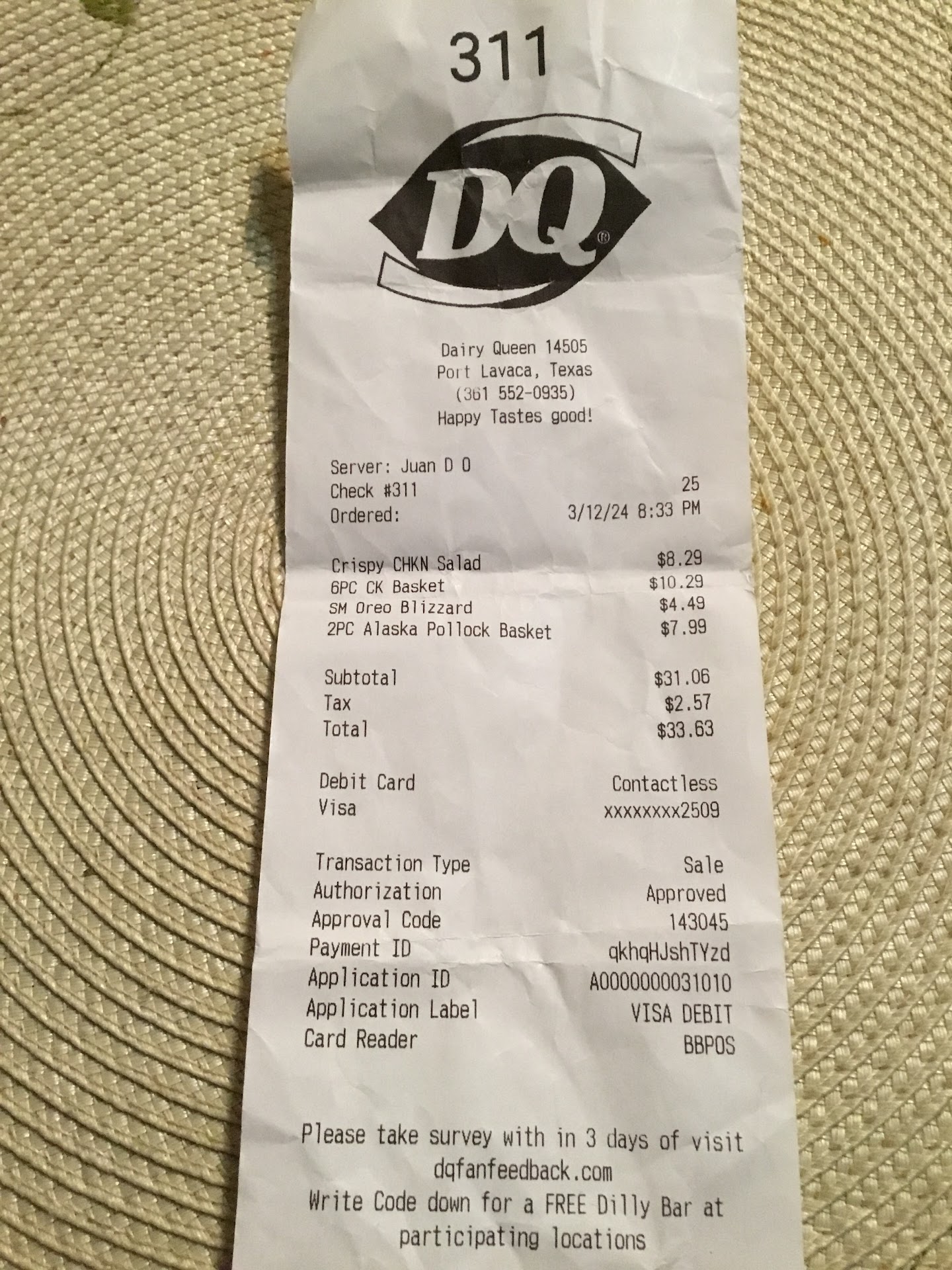 Read moreThis is another heavily nostalgic location for me. Yes, my order has been messed up here, and yes, it's a little slower than the other Port Lavaca DQ location. To clarify, that doesn't make me mad. If my order is messed up, I politely take it back, show them my receipt, and they fix it. Honestly, I'm a bit concerned looking at all of these reviews of "bad food" and messed up orders. I'm wondering if the people leaving these reviews even asked to have their order corrected, or if they just sat down and took a picture of the food for the sake of a one-star review. If your order is messed up, ask them to fix it. It's not that hard. I've never had inedible food here. It's always hot and it's...