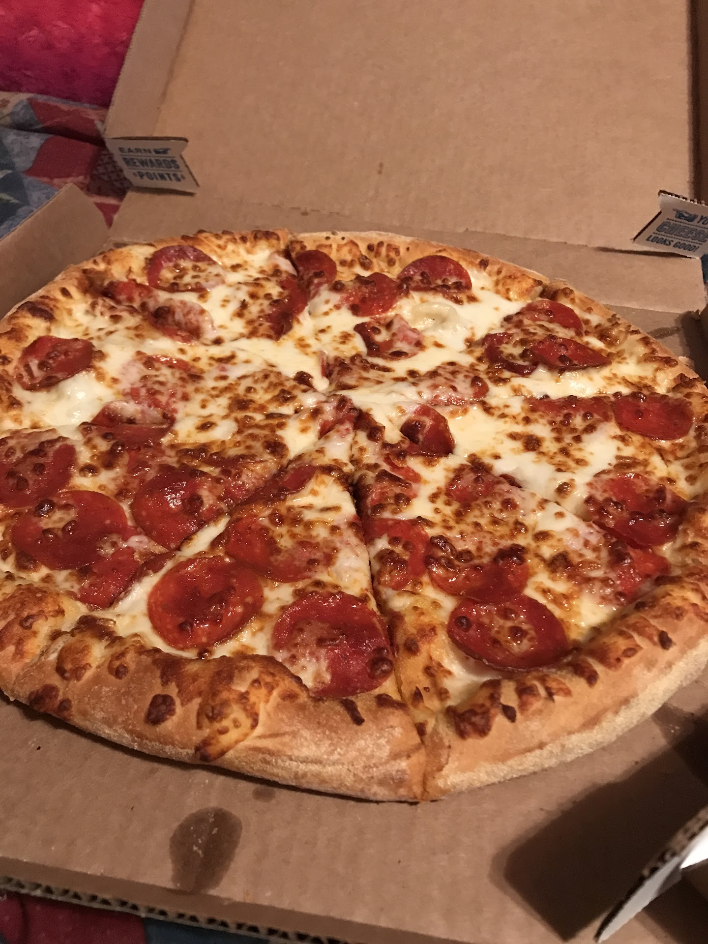Placed order of 1 medium pizza and 1 order cinnamon twists at 7:56 pm on 1/20/22. The approximate delivery time was 65 to 75 minutes which is extreme in my mind however it is pretty cold and thought a lot of families were ordering dominos so they did not have to take their kiddos and everyone out in the cold. TWO hours later they delivered the order by handing me the bottles of orange soda. I told the lady that is not my order. The lady sighs in frustration, didnโt you ordered cheesey bread orange soda and a medium thin crust pepperoni pizza? I relied, โNo maโam.โ The kind lady sighed again in complete frustration and asks, โAre you Jodi Sanders?โ I said,โyes maโam.โ She said well they sent me with this extra stuff to give to you apologizing for how long it took. However, if you would like I can return the sodas to the store. I told her she could return the sodas since we donโt drink orange sodas. She then gave me my pizza and cinnamon twists and then gave me a medium pepperoni and cheesy bread. I thank her and thought that was nice but it was a TWO hour wait. I get to the kitchen, husband comes in asks what all I ordered and I explain what she told me. Puts his two slices of pizza in microwave because pizza is COLD. Husband then says someone is knocking on front door, it was the delivery lady asking for the extras back because the extra pizza and cheesey bread was for someone else. ๐๐๐ฉ๐คช oh my gosh!...