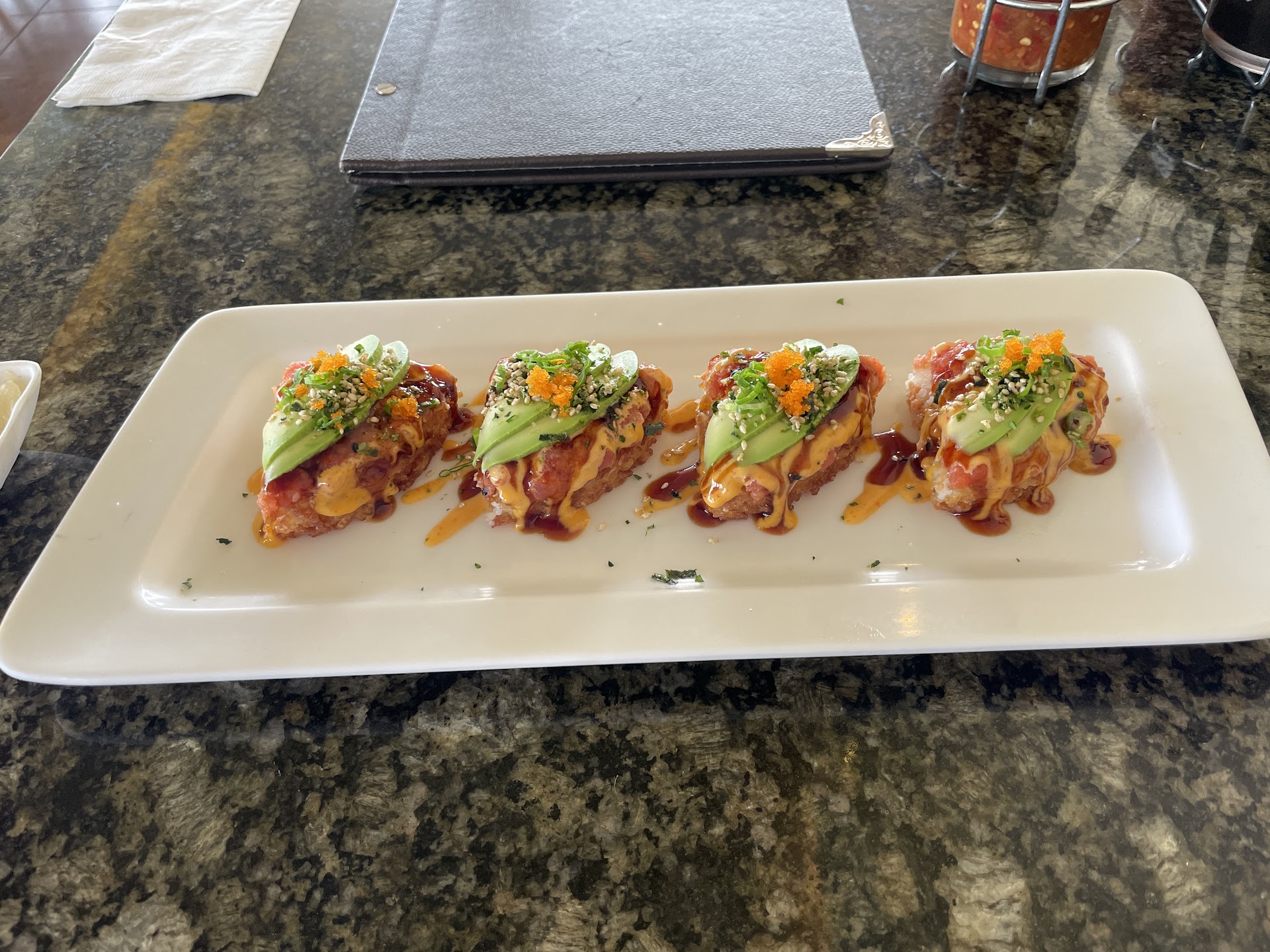 I split some of the rice with my husband, and we got 2 different sushi rolls, and the dessert, and the total came out to $40 before tip. Best value for the best meal we’ve had at a restaurant in a long time!