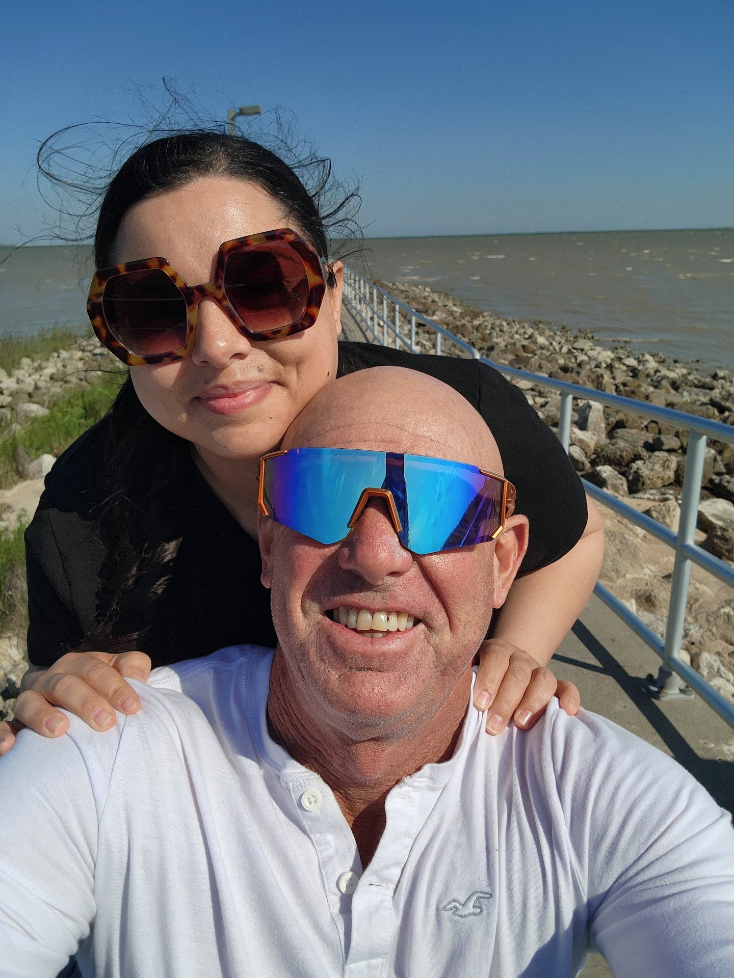 I always stop here going to work to pick up a couple of bar b que chopped beef sandwiches or brisket sausage sandwiches to go. I used to work at a bar b que joint in college and this has the same look, old bar b que soaked walls and that brown age stain over everything that once was white or light coloured like the plastic white menu boards. But that is just the ambiance. There are a lot of neat photos of local fishermen and catches on the walls. Its almost like a frontier western feel. Right adjacent to it is another area that serves great burgers. It is the home if the Big Daddy Burger and believe me it is huge and wonderful. Order one and feed a family of four! The bar b que is very good and moist and wonderful. Of course its a little expensive but i guess we dont raise enough cattle in Texas to lower our beef prices. (My brother who lives in North Carolina says i miss Texas brisket, we cant get it over here!). Now if you order a bar b que samich to go make sure you throw in some extra napkins and dont throw the "sack o samiches" on your leather car seat or console cause the grease can ooze out. But its a good thing! That is good bar b que grease oozing from the moist brisket. You...