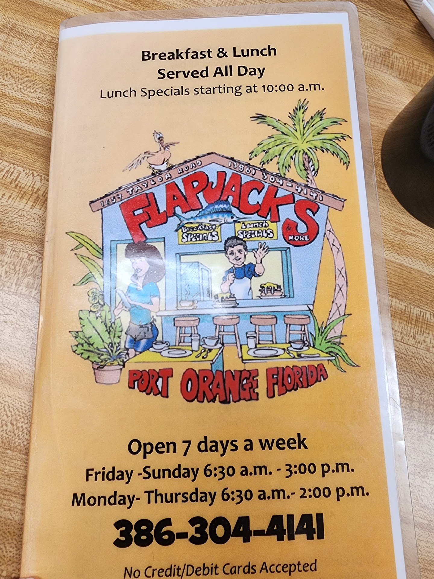 I visited this place a few days ago bc I love pan cakes, I called to confirm that they had maple syrup bc it was my choice of syrup, I was told they did have maple syrup twice, when I got there I asked again to be sure and was again told yes, the meal came and there was no maple syrup and the pancakes were a mess and tasted as if it was nothing less than a mix of water and flour, the bacon was of less quality than waffle house thin and transparent, the place is located in a predominantly WHITE area considering I saw no other race in the whole plaza which included a publix, not stating this as bad just an fyi.