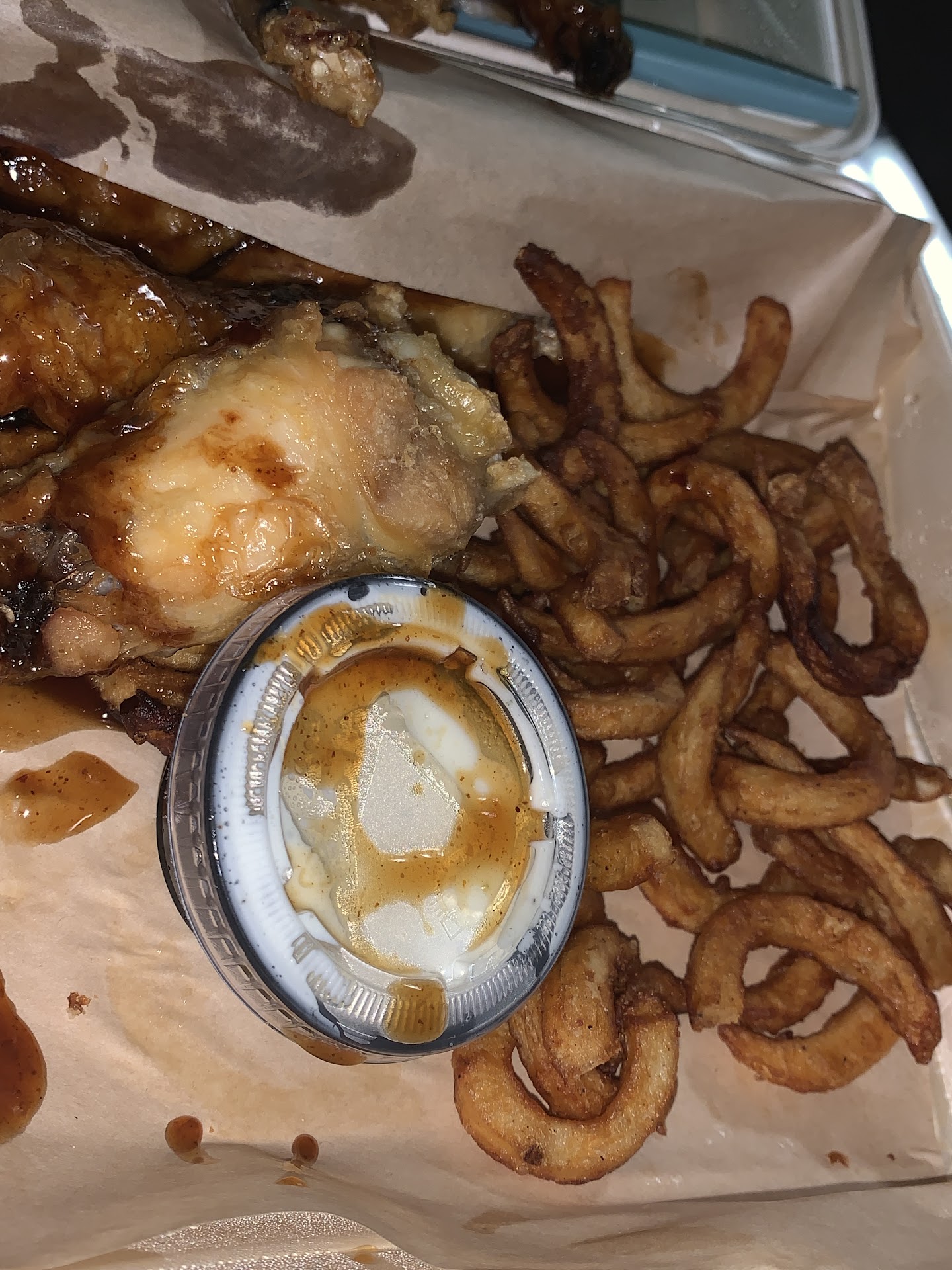 Read moreThe only place this place is headed is down hill. Bring back the curly fries, bring back the Apple BBQ sauce, because these changes are for the worst. I stopped ordering drinks from here because it was always not what I ordered, and I stopped ordering the fry sauce because the last 4x I ordered it I never recieved it. The chicken is unappealing, it looks like it's been sitting in the sauce for so long that the chicken started absorbing the sauce, making it look dry and mushy. I don't understand what happened with ya'll. The overall quality of this place has definitely dropped in the last 6mths, surely you could do better this? For reference, I've been a customer here for 1+ years. I order delivery, so I know it's not gonna be as fresh as in store but this just isn't...