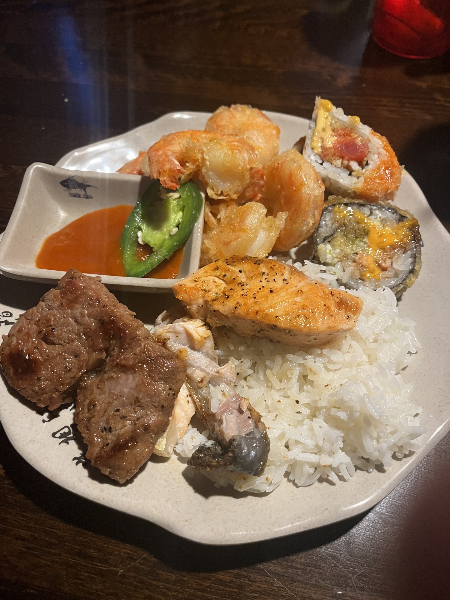 Read moreWe have been excited about this new place because they have been missed in the area since WAWA took the place of their old restaurant. That being said, we went for lunch. The inside has been remodeled and is new and nice. Our service which consisted of drink service and plate removal was good. That being said, the food ranged from great to something much less. First, we were excited about the sushi. Their old restaurant actually had a sushi chef working where you could see him and actually ask for something if it was not there. We got there early for lunch and the sushi assortment was good. However, within about half an hour, the sushi bar was depleted and many selections were empty. This was extremely disappointing to say the least. While we prolonged our meal waiting for them to restock the sushi bar, they never did. It was wiped out and stayed that way. We also tried many other selections... just a few bites to taste a variety. Most were very good and seasoned well. Others, not so much. Some of the seafood mixtures looked a bit off. The crab rangoon was excellent though and the mushrooms were great too. Bourbon chicken taste was way off. For only being open a month or so, the reviews should be better than the current 3.5 stars IMO. This is a family owned and run operation and they are pros at making great food experiences in Port Orange. We hope they will work on servicing the sushi bar properly and fine tune some of their recipes. All in all, we are hopeful they will improve and be as good or better than they used to be in the old location. We will try them again in a few weeks and see if they have taken the constructive criticisms to heart and acted upon them for the better. Also, it would be nice to have low sodium soy sauce available on the...