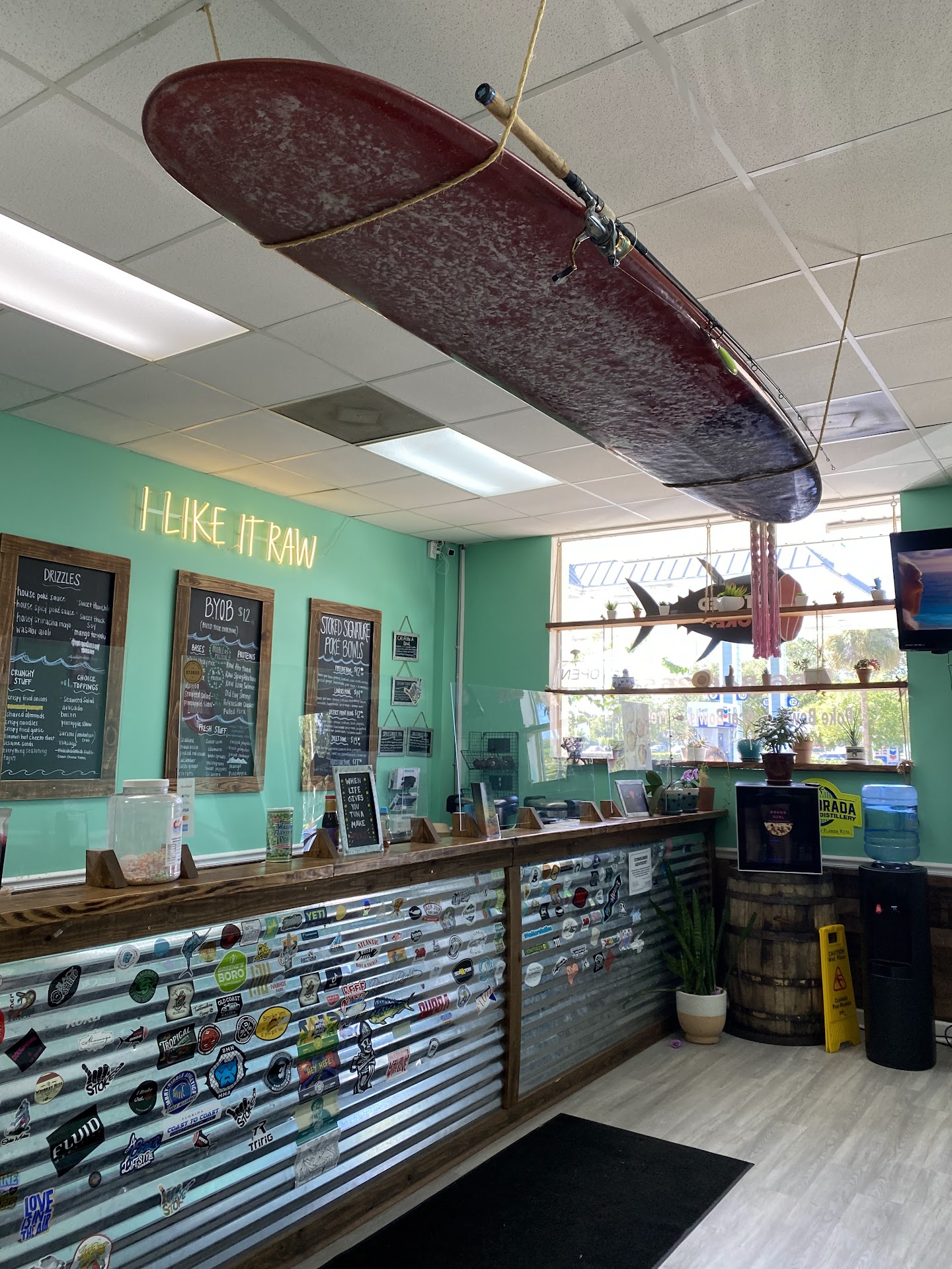 I thought this store was pretty adorable too- it’s very surfer/ island themed which fits for a poke place. The employees were friendly-ish but overall could’ve been better. The one girl working was a bit snarky even to the customers before us so that was disappointing.