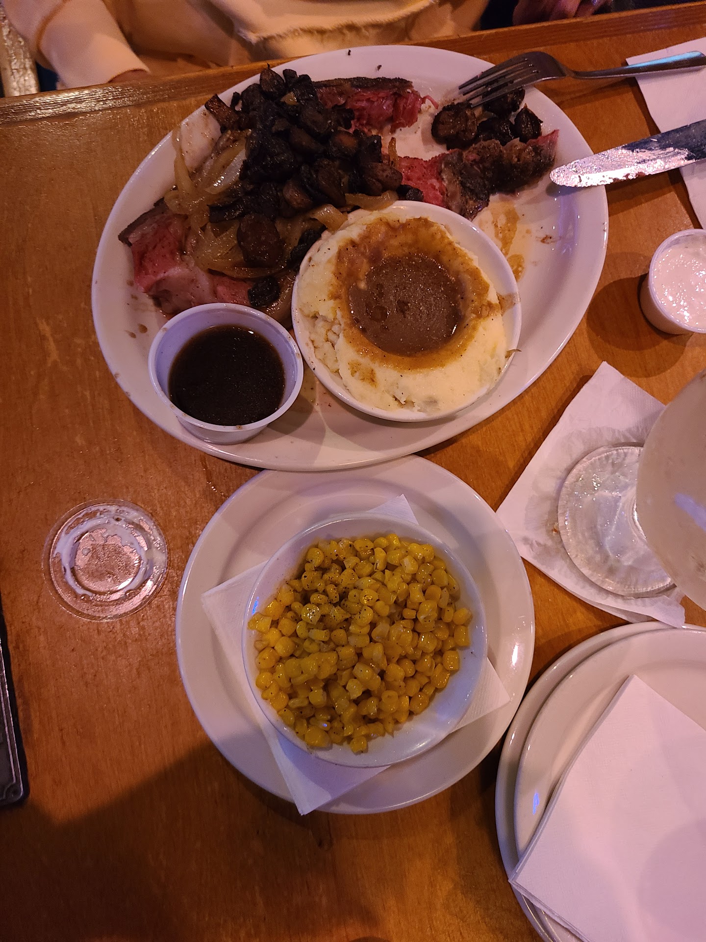 Ā Ā Ā Read moreOn vacation from the UK with my two teenage sons, we'd already tried a Texas Roadhouse in Amarillo TX and were very impressed so by the time we'd completed our road trip to Florida, we wanted our last evening's meal to be good! As we were staying in New Symrna Beach, the Port Orange location was just 20 minutes away. We joined the waitlist but the restaurant wasn't too busy when we arrived and we were seated straight away. Having only recently discovered the (apparently famous) Texas Roadhouse bread rolls with with cinnamon honey butter, we couldn't wait to try them again and drinks orders were takemn and a basket of the rolls arrived within a minute or two! Our server Sophie was a delight! Super friendly, chatty and attentive as well as making sure our drinks were refilled before we could even think to ask! Between us we had a chicken and ribs combo, a steak and ribs combo (with a skewer of grilled prawns on top!) and a 14oz ribeye steak. Everything was cooked to perfection and the ribs in particular were just incredible - falling off the bone and not too drowning in sauce. My sons both like their steaks rare and were delighted that's how they arrived. Side dishes were exceptional too including the garden salad. My loaded potato was divine and the fries / mashed potato were also great. The restaurant was starting to fill up a bit by now (despite it being a Sunday evening) and everyone seemed to be having a great time. The check came to $113 for the three of us which I felt was very reasonable for the amount and quality of the food. You can even pay using a little terminal on every table as well as browse the menu. The restaurant is easy to find just off I95 and has a little lake outside. I'd highly recommend this place and look forward to visiting again next time...