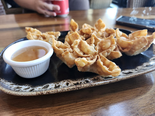 The Crab Wontons (not called Rangoon here) were our starter. It says on the menu that it's partly made from imitation crab (along with real prawns) but this dish typically tastes more of savory cream cheese than crab anyway. It was delicious, and perfectly cooked to very crispy--but hot as in temperature. Be careful about digging in right away, if you can.