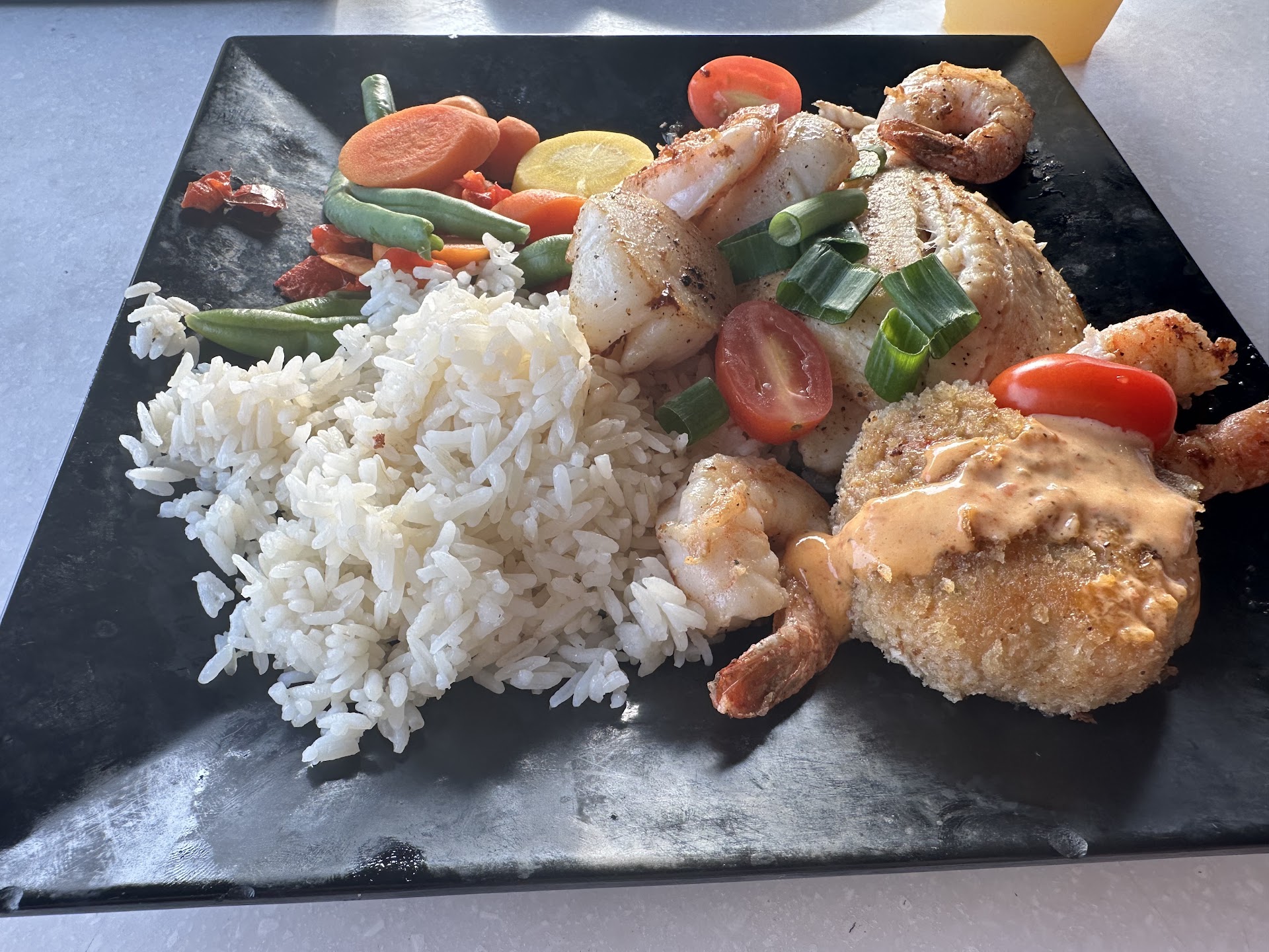 Sunday evening, I took my niece, two daughters, son-in-law, and granddaughter for family get-together dinner. Even though the place was not busy, it was understaffed and we had to wait quite a while to get our orders, but it's a nice location, and the drinks were good, so we didn't mind a whole lot. It gave us plenty of time to socialize and catch up. We ordered three appetizers, the grouper fingers which were spongy and gross, the Cobia bites, and the fish dip. I ordered the flounder fish and chips which were soggy, and definitely not deep fried. We had our meal when we left.