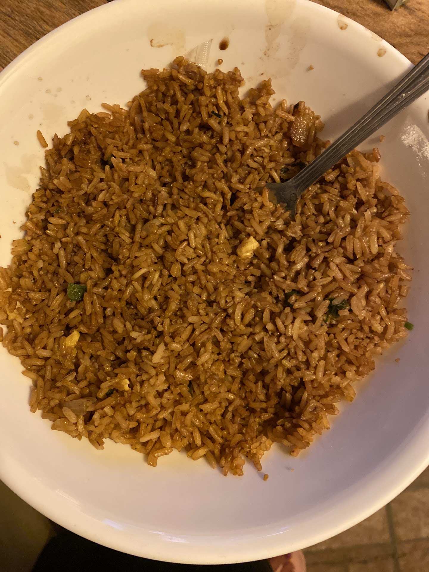I ordered a quart of shrimp fried rice with x tra egg and it was like eating a bowl of rice with no xtra egg and there wasn’t nothing for shrimp in it. The bowl of fried rice you see in pic i ate 4 little pieces of shrimp out of that whole bowl. Usually in fried rice they put carrot and peas and there wasn’t anything but a couple pieces of onion. Truthfully for over $10 a quart it was more like eating a bowl of plain rice.That yellow thing in pic was my xtra egg I ordered,lol.Very disappointed and we order from here all the time and always spend about $40 and tip very well.Don’t know what happened to your fried rice but you need to add some carrot and peas to it to give it some flavor.Then I asked them for xtra soy sauce packets and I asked them 3 times and they give me 2 packets for 3 meals.Don’t know what happened but won’t be spending my money if your going to cut corners like that to make your money when my money keeps you in business.Threw almost the whole quart of rice in the garbage. The restaurant called me today and said he was off yesterday and he would make it right today as we order there very often and is usually great! Thank You for calling me on this matter much...