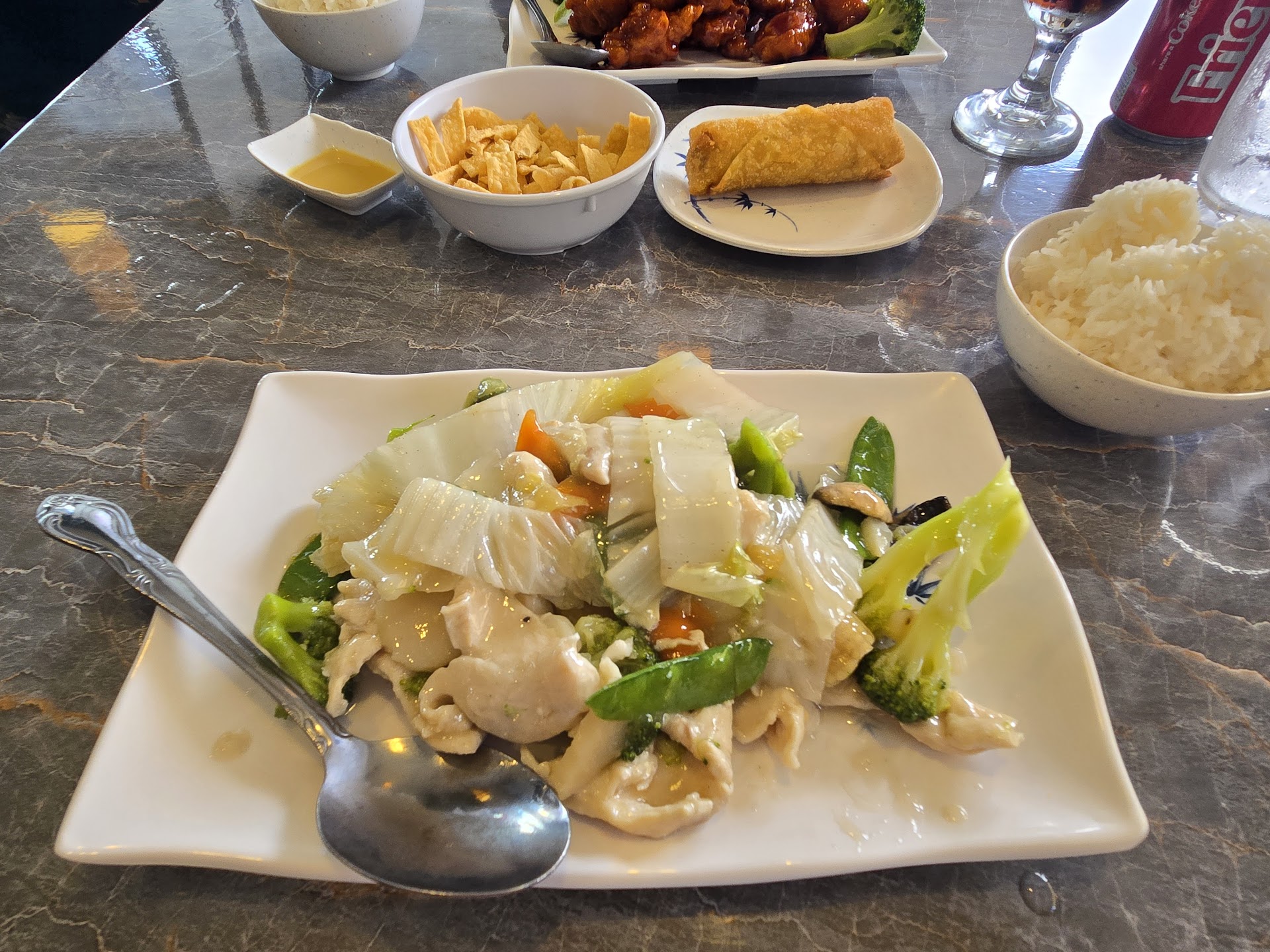 Ordered for pick-up. Here is my experience: When I arrived, a pleasant young lady greeted me, asked my name, and informed me that the order was not yet ready. I was a few minutes early, so nbd. After a few minutes, a bag was brought from the back and placed on the counter by the register. At the same time, another customer came in to order. Here's where it gets a little weird. The young lady that had greeted me, asked me again how she could help me, as if she had not yet met me. She had apparently forgotten our earlier exchange from 5 minutes ago. I again informed her that I was waiting to pick up my order, gave her my name, AGAIN, and then she looked at the bag next to her, grabbed it, and handed it to me. I left perplexed, but figured the place is new, so some bugs might need to be worked out. Plus, who knows what kind of day this person had had. When I returned home, I opened the bag and took out the contents. We ordered: 1 pint Wonton Soup 2 Spring Rolls 1 pint Shrimp Lomein 1 pint Bourbon Chicken w/ fried rice The fried rice was missing. 😟 I called and the young lady apologised and said that on my next order, I will receive the fried rice. I understand. Mistakes happen. On to dinner! Here are my impressions of the food, beginning with the Wonton soup. Meh. It was kind of bland, with only 3 wontons. 5/10 Spring roll: Okay. A nice crisp on the outside. A little light on the veggies inside and a bit greasy from deep frying. 7/10 Shrimp Lomein: Good flavor profile, and a decent amount of medium-sized shrimp, but the noodles were overcooked severely. 6/10 Bourbon Chicken: Huge disappointment here. (missing rice not withstanding) The chicken was overcooked and chewy, if not jerky-like. The sauce was okay; sweet, with very little actual "bourbon" flavor. There were no vegetables of any kind in this dish. Just chicken and sauce, and not really very much sauce. 3/10 I have had numerous take-out Chinese meals over the years. This one ranks near the bottom, I'm afraid. I will try them one more time to see if there is any...