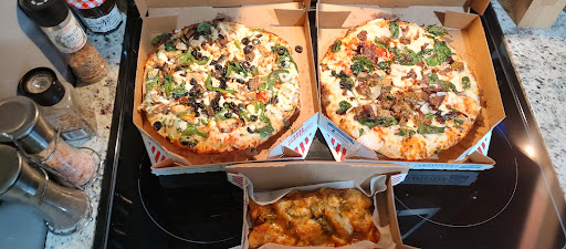 Read moreWe have ordered from here about ten times. Two out of the last three orders were pretty good. This order was two seven topping pizzas'$ and pineapple jalapeno chicken whatever. One was extra cheese Italian sausage and steak. With garlic, onion, peppers and spinach. Had no flavor. Possibly tasted like dish soap. The other was chicken, olives, onions, garlic, mushrooms and feta cheese I forgot what else. Tasted like an aluminum can. The single chicken breast with cheese pineapple and jalapeno was the only flavor in the meal. Waste of fifty dollars I had a slice of each. No one else in the house wanted to eat them after trying. And I have a stomach ack. Here's some pictures anyway. You could make better pizza with some string cheese and hotdog toppings at 7-11. I gave a three for atmosphere because the...