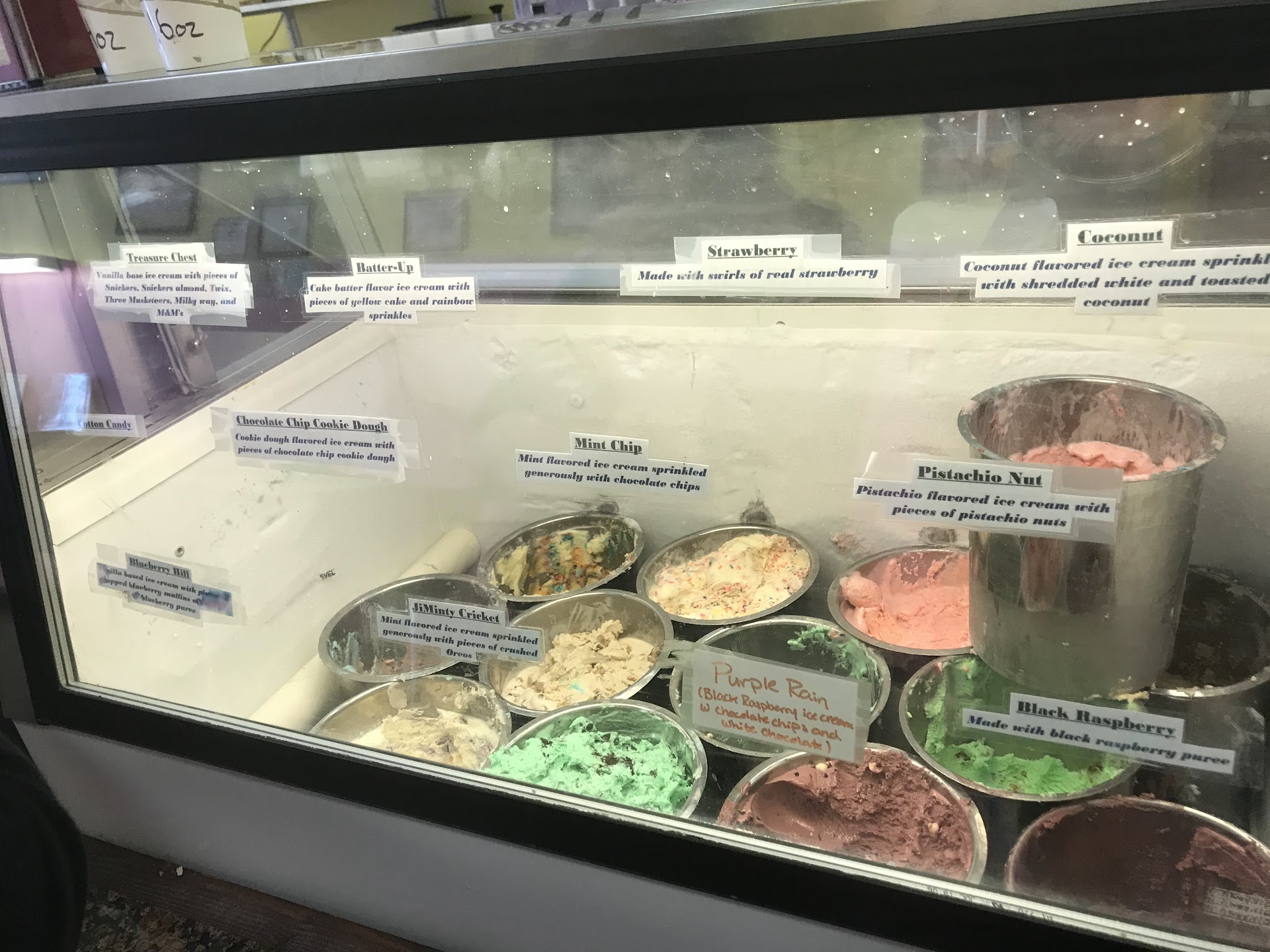 They told the customer in front of us they ran out of cookies and cream, and didn’t have time to refill the cooler. Ice cream containers were stacked on top of each other and falling into the containers below, creating health/hygiene issues. There was melted and refrozen ice cream all over the sides and the bottom of the cooler, it looked like it hadn’t been properly cleaned in awhile. Around the restaurant was also dirty and needed a good cleaning.