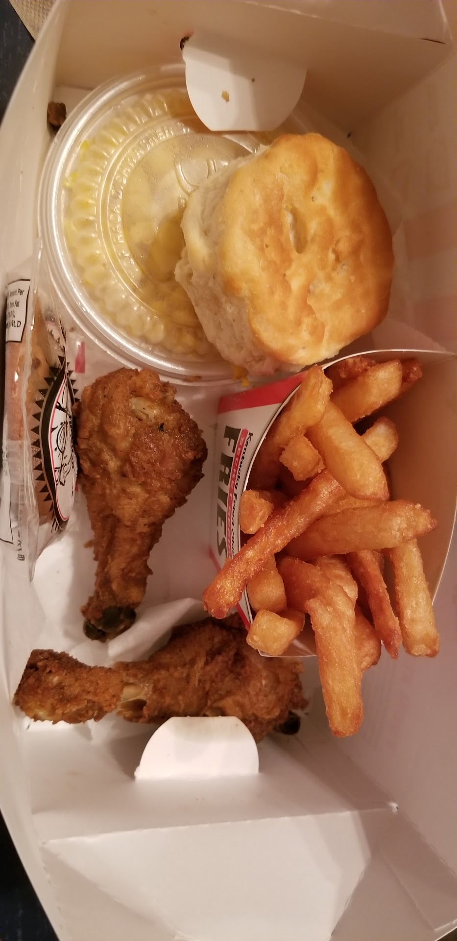 Read moreI want to share my experience with you today. I have worked at KFC in the past when I was a teenager. So l am well aware of the chicken market. My lovely family was craving delicious fried chicken tonight... I got on my wonderful and easy to use App to order... it worked flawlessly!! My son and I got into the car and decided to spend quality bonding time while we drove the 12 minutes through rush hour traffic... we arrived and we were pleasantly surprised that our order was ready in the pickup area... we then drove home and opened the round bucket of glory!!! Only to discover one leg, two pigeon sized wings, one disgraceful old breast, and one decrepit thigh... in my disbelief that they shorted me on 3 pieces of chicken!!! I must give credit where credit is due, the 4 biscuits where good and the gravy was delicious.. I tried to call the store multiple times only to have no one answer my call!!! Customer service? Screw that!! I then looked through my tears and was able to find the 1-800-CALLKFC marked on the bucket... I called and spoke to a very caring call taker who apologized multiple times for the mess up and opened a formal investigation!! She provided me with a case number and immediately transferred my call to the online ordering escalation department!! I then repeated my breathtaking story to her, talk about reliving my trauma.... She told me that my 3 pieces of missing chicken was worth only a refund of $5.00... but the trauma l received was so much more!!! My family and I will be going to bed hungry tonight, but the trauma I experienced from KFC will last...