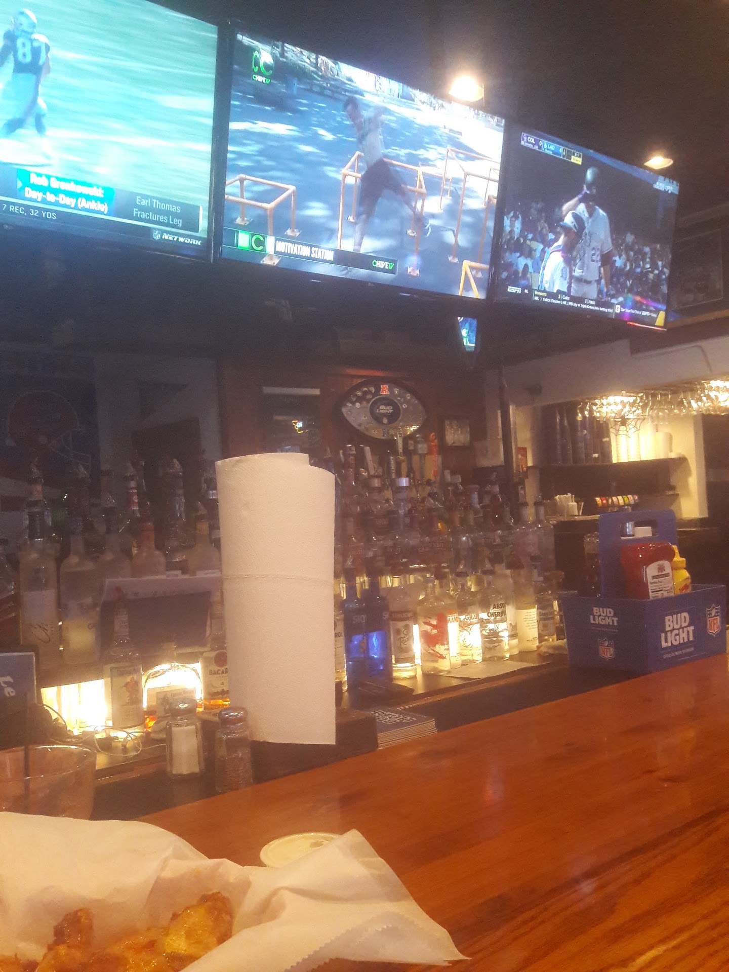 Read moreMy wife and I went there for first (& last) time last night. We made the bartender aware of that fact when we asked about the drink specials we saw on this page. (Basically the reason we went) She knew nothing about them but asked a manager. We got our beers. There was an obnoxious crowd at end of bar. We ordered wings and they came in good time. Not impressed some very small and lacking in meat as well as overcooked. The crowd at end of bar got louder as time went by. We mentioned it to bartender and was told they knew some were intoxicadted and had been serving them "fake" shooters. (made me wonder if they were being charged full price for real ones) She went on to say we won't keep serving. In my mind that would have been the time to ask the group to leave instead. We finished our beers and our glasses set empty while the groups got a couple more rounds. We fininshed our wings and the baskets, used paper towels and plates with bones sat piled in front of us along with our still empty beer glasses for 18 minutes. (I timed it) Halfway through our waiting for another round we motioned to original bartender to come she knodded but never came.When I was finally able to get attention of bartenderIi asked for the check, left no tip and even commented to adjoining patron we will never return. I originally posted this review on their facebook page but it gets deleted instead of addressed. e are convinced now it's not just poor service but...