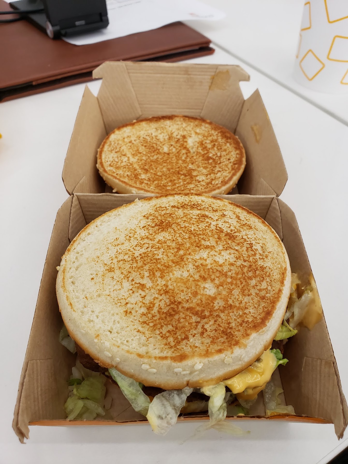 I try to recover some semblance of a decent lunch and turn to my Big Mac for consolation. I open the box and am immediately APPALED at what I’m faced with. The bottom third of the burger is great, containing one patty, lettuce, sauce etc. but the top third, has NOTHING on it. Not even lettuce, sauce, pickles… anything. It’s literally air between two dry buns. Pictures attached for reference. COME ON MCDONALD’S.