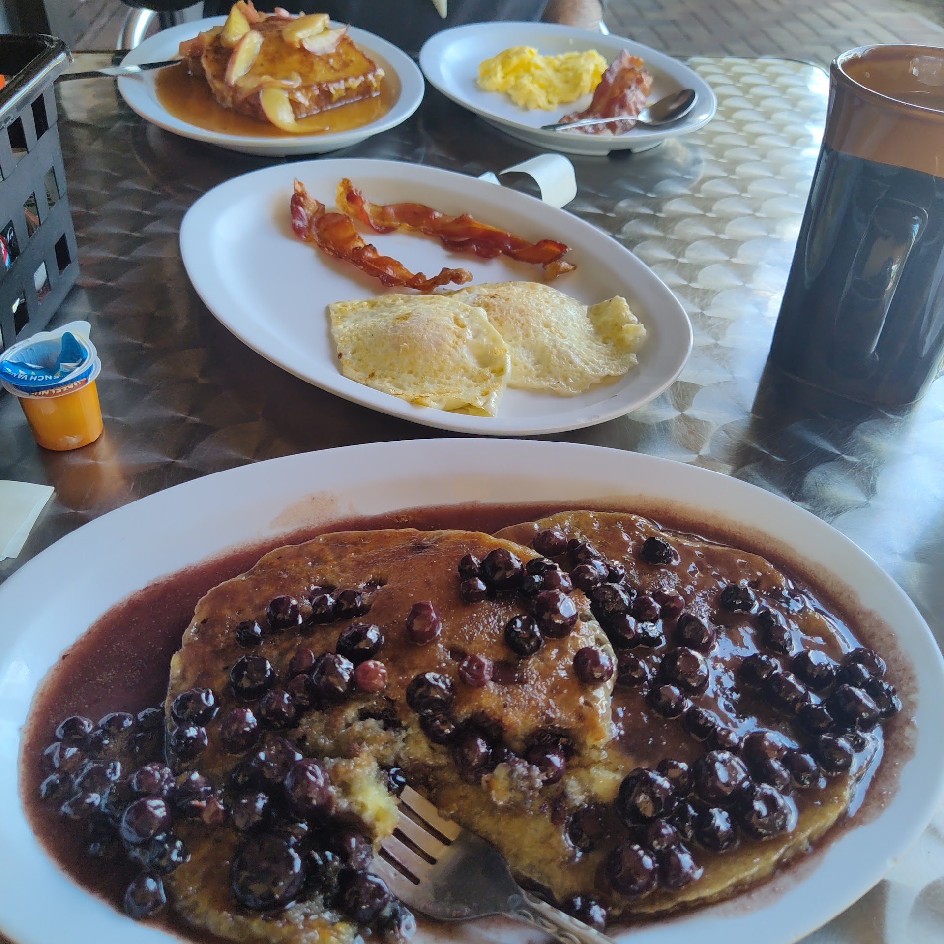Ā Ā Ā Read moreSecond review - Breakfast here is Dreamy! Every time we visit PSL we come here for breakfast! This time I had the Blueberry Dream pancakes. Blueberries IN the pancakes as well as on top and rum sauce! š Uncle still had the Fireball French toast, men have one track minds! š Next time we visit I'm going to see if they can put the toasted coconut on top of the blueberry pancakes with the rum sauce! That would make them Heavenly Pancakes, because I would be done dreaming and gone to heaven! š The only problem I had was the newbie at the register. Upon arrival I had gone inside and asked for a server to bring a towel outside to wipe down the table, we had a pup so dining outside was the only option. When a server finally came out not only was there no towel but she was not told anyone was outside. Another couple with a pup had the same problem. They were told the cashier was new. Need to train people to talk? But I didn't let that ruin my over all experience.