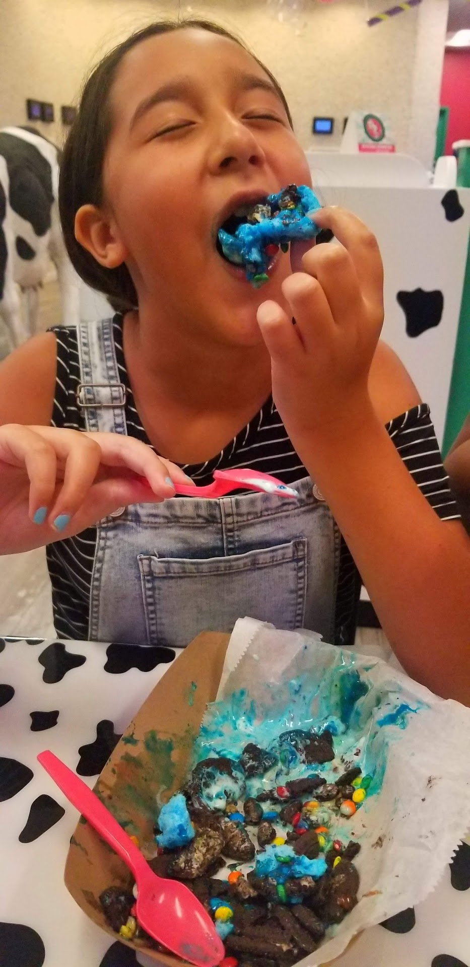 Ā Ā Ā Read moreVisited tonight (03-17-22). Very unimpressed. The place was extrememy dirty. Dirty napkins all over the floor and tables, the tables were dirty, the containers where they keep the toppings were dirty, the trash can had ice cream dripping down it...etc. Not only was it dirty, but there were about 4 empty ice cream bins that hadn't been removed and roughly 5 or 6 of them were mislabeled. When I told the clerk she said she had noticed that earlier today (?). One of the freezers was broken so that's about 10 or 12 ice cream flavors missing. This place looks like it used to be a froyo place and they just decided to slap some paint and decor on the walls rather than rebuild the inside to make room for seating. My husband ordered a shake (I didn't get anything cuz I was kinda grossed out and I also only knew what like 3 of the flavors actually were since they were mostly mislabeled) and we walked out without a straw because they didn't have clean straws available. They had one of those machines where you press on the bottom and an unwrapped plastic straw comes out (hi, we are 2 years into a pandemic, that's effing gross).