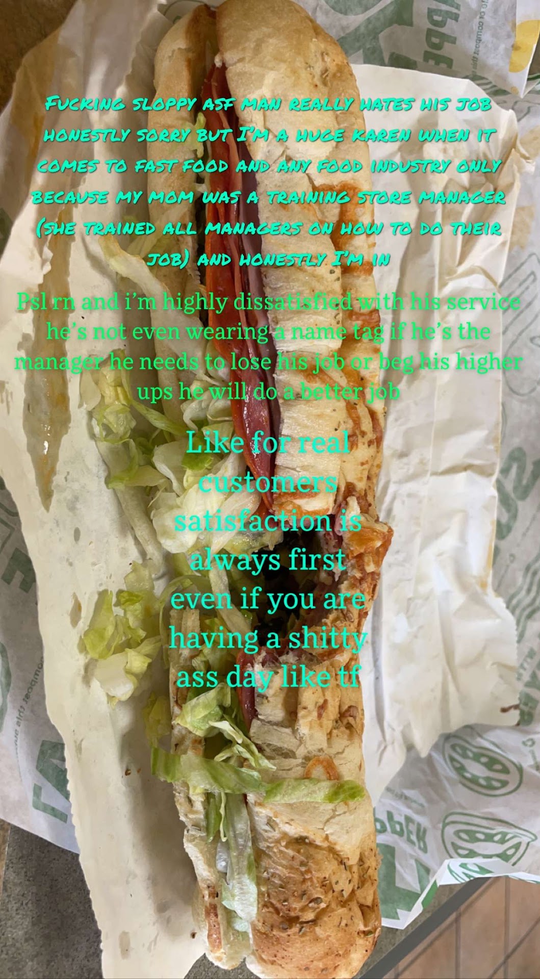 Read moreHorrible experience! I entered this the establishment with my sister, son, and two nieces. The moment we walked in we received nothing but attitude shown through tone and body language. We requested that the staff change gloves and clean knives due to us not eating meat. The knife was never cleaned prior to cutting my sub although a meat sub was cut prior.(confirmed by worker) my sister requested the marinara sauce be put on her sub however she was not notified that the marinara sauce was with the meatballs already.(other locations have it separate). When this was brought to the young man’s attention he became very defensive and disrespectful. We requested contact information for the manager and received resistance for...