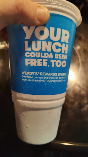 Read moreWent there last night. Never had a problem before till now. I did a mobile order. I get home and notice they never gave me my 4th bag which would of been the kid’s meal. So I rushed back to Wendy’s. The little Spanish lady I guess is the manager kept trying to convince me they gave it to me and said “i packed 2 kids meals” ok well I only got 1 so it wasn’t me. She acted like she wasn’t believing me which was pretty upsetting. Than finally she agreed to give me my kid’s meal. I waited a total of 8 minutes which by now my other food I got from them which had been sitting in my car was cold. (I had brought it all back with me) but I wasn’t told they would replace my cold food. At this point I was tired and just wanted to get home. Also they put stickers on our cups where the straw goes? Never seen them do that before but it made it so none of us could put straws in our drinks. When you peeled the sticker off it left half the sticker still stuck to the cup. Very disappointed I been going to this location for years and have done mobile ordering...