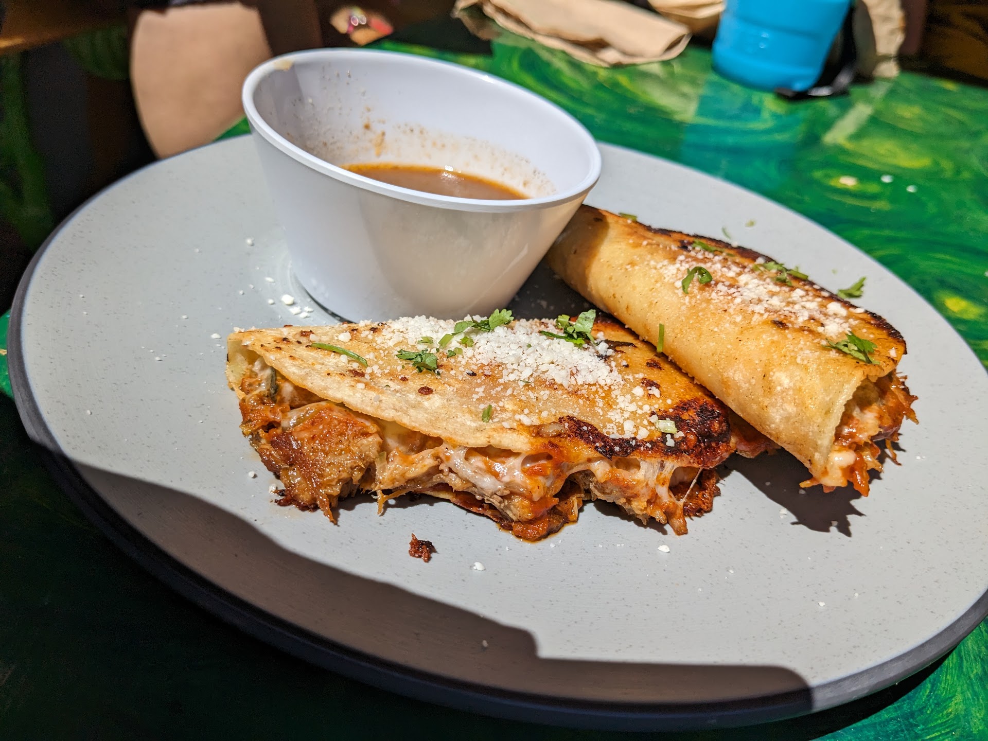 Pros: Amazing tacos! Extraordinary. I had both the Chicago Beef and the Pork Birria. Both came with au jus. Crispy tortilla that's been filled with tasty inside bits and then fried/seared on the outsides to give it a great crunchy texture. Great flavors, very well developed. Absolutely professional cookery there. Nice selection of drinks. Friendly service. Looks and smells clean.