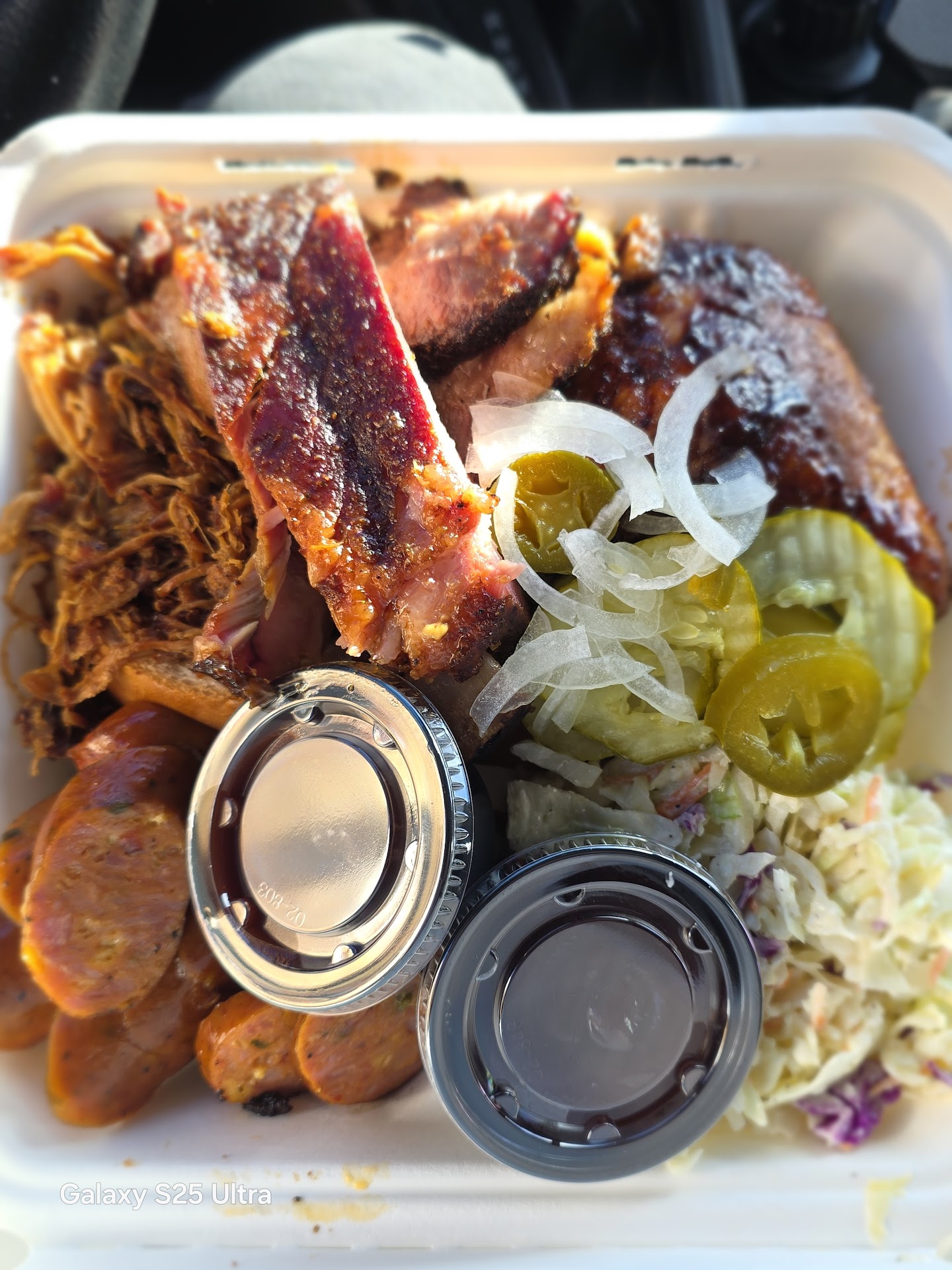 The food was better then most bbq restaurants I have been to, just not great, infact I try not to go to BBQ restaurants as I will always compare it to what I make and like. Would I come here again, sure. I know not to eat the pulled pork or sausage....