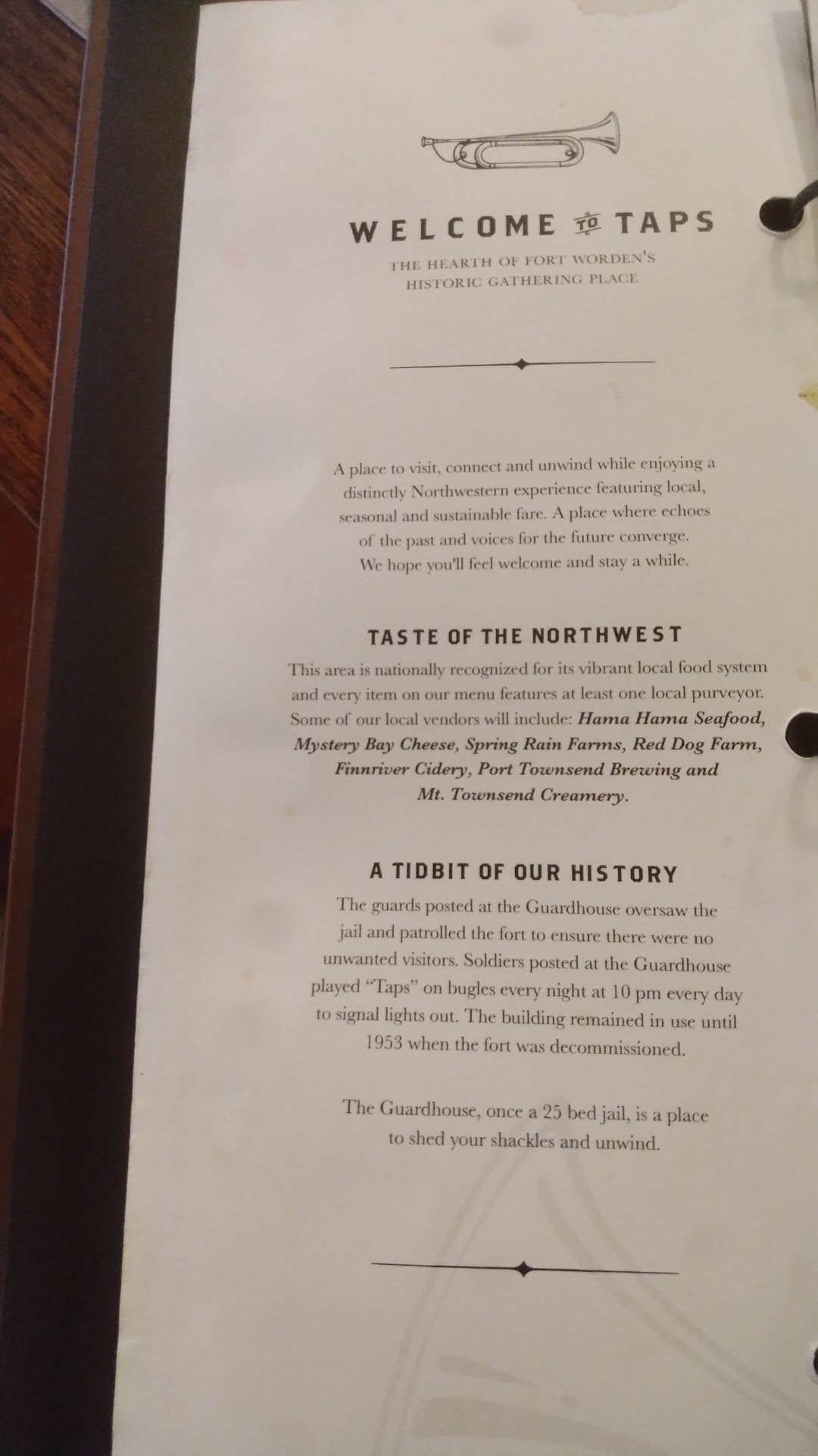 Read moreMy husband and I visit Port Townsend quite often but never knew about, Taps at the Guardhouse. We stopped in for a late lunch today. What a pleasant surprise and great find!! The ambience was charming, the staff was welcoming and very attentive but best of all, the food was great! The menu is limited but there’s something to please every tastebud with a broad selection of beer and other drinks too. As we got ready to leave, we were presented with a “To Go Box” but we didn’t have any leftovers...?? You see, earlier we had tried to order the crab cakes but they were sold out. The cook and staff were very apologetic but no big deal we thought. We each ordered a delicious, stuffed baked potato instead. Best ever!! Anyway, while we were eating, apparently the restaurant had received a new supply of crab and surprised us with the crab cakes we had originally tried to order. That is the best customer service anyone could ever hope for. You can bet that we will tell all of our friends and family about Taps. Thank you again for the great food and dining experience!!! We can’t wait...
