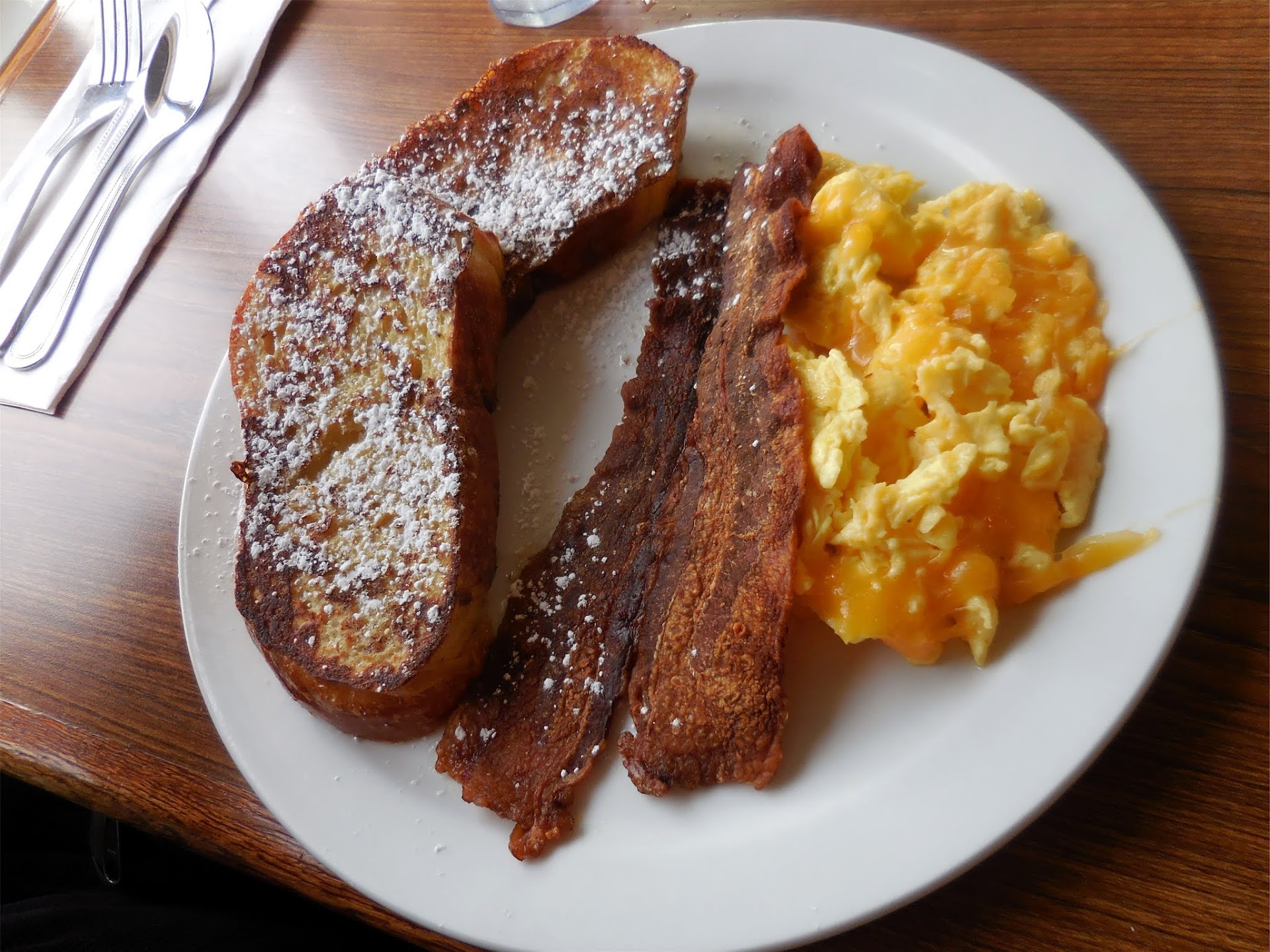 The food well its solid, tasty and like my good buddy says "Its Not Greasy". Eggs benedict was good but not spectacular but then again that's not what I expected. I expected good solid food which means I will return again and make this my new breakfast local...