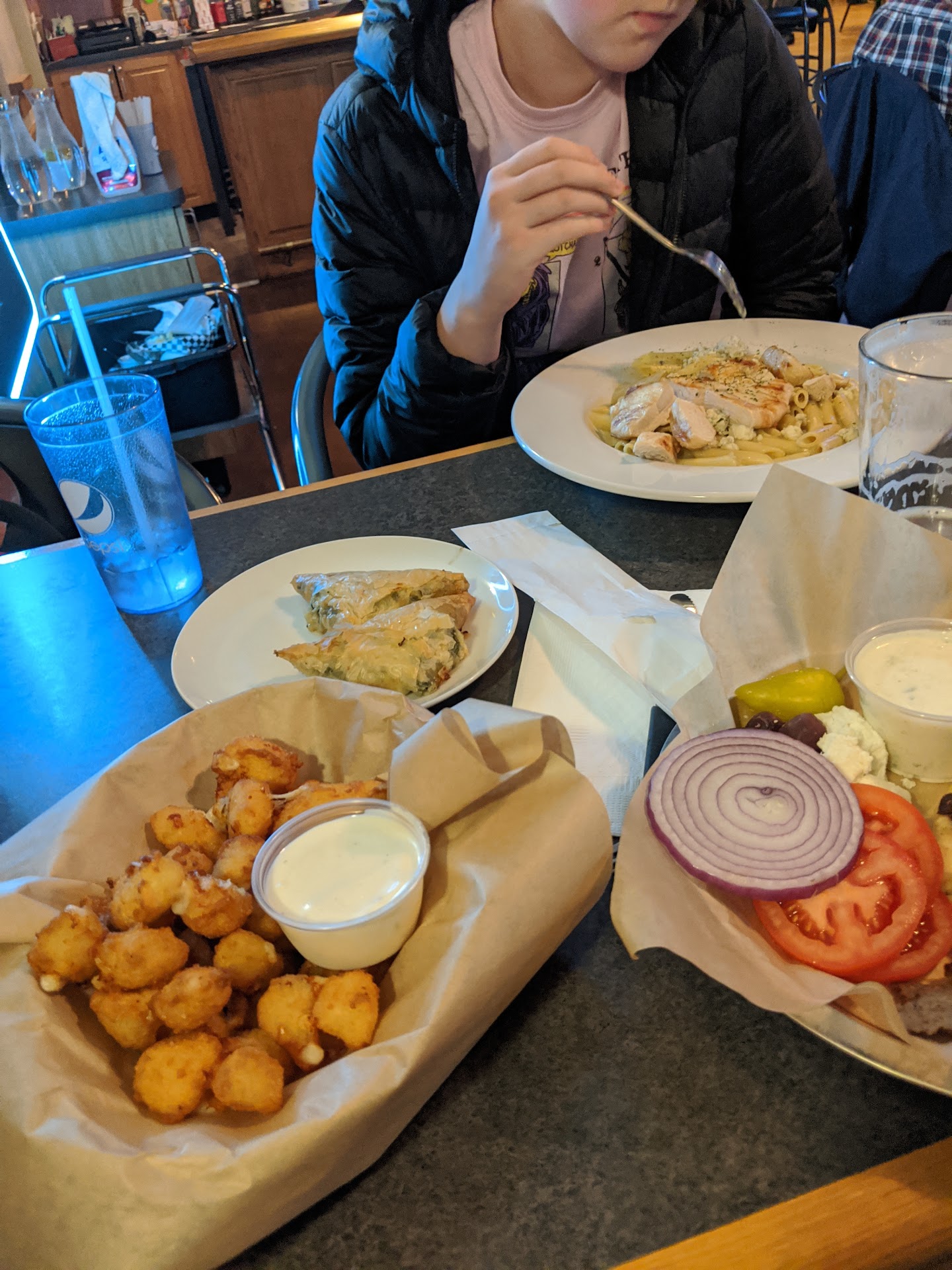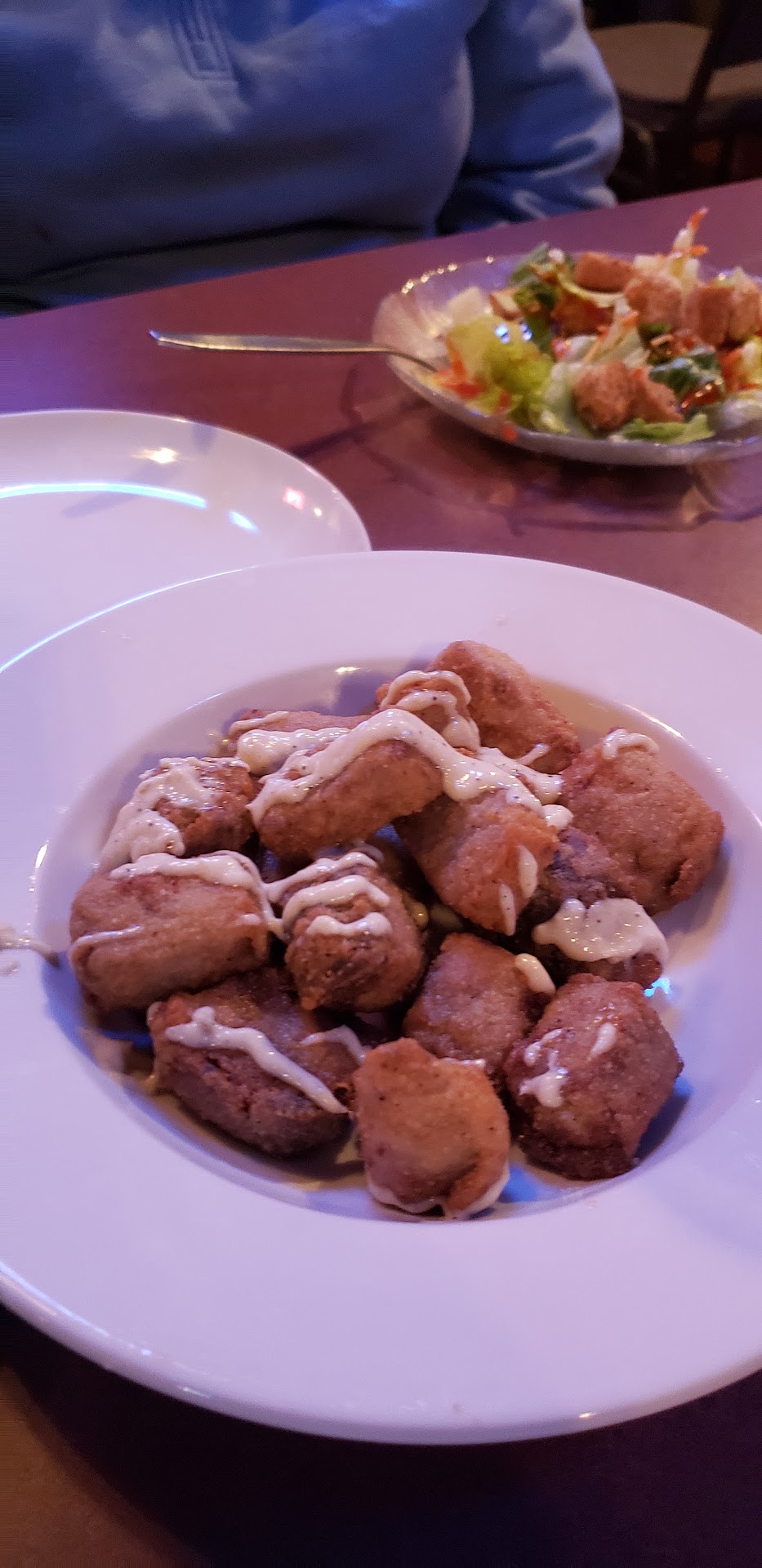 Read moreOur first stop after we checked into our hotel in town/port for a weekend stay.. It was about 5pm and we wanted to eat so we could pub-crawl back into town/port. While driving my wife called in a reservation and we got seated quickly. It took a lot of time for our server to even acknowledge us approx. 15-20 min. We were honestly close to leaving; the older lady who sat us came over and asked if we had been taken care of yet. When she realized we had not she got someone over quickly. It seemed like they were either short staffed training [or both?]..not sure. Anyways the food and drinks were very good. I had the breaded fish special, spinach/pita dip and she had the grilled chicken salad. So I would go back, would have been 5-stars if we would have gotten a bit more timely service. Other than that a good place for both...