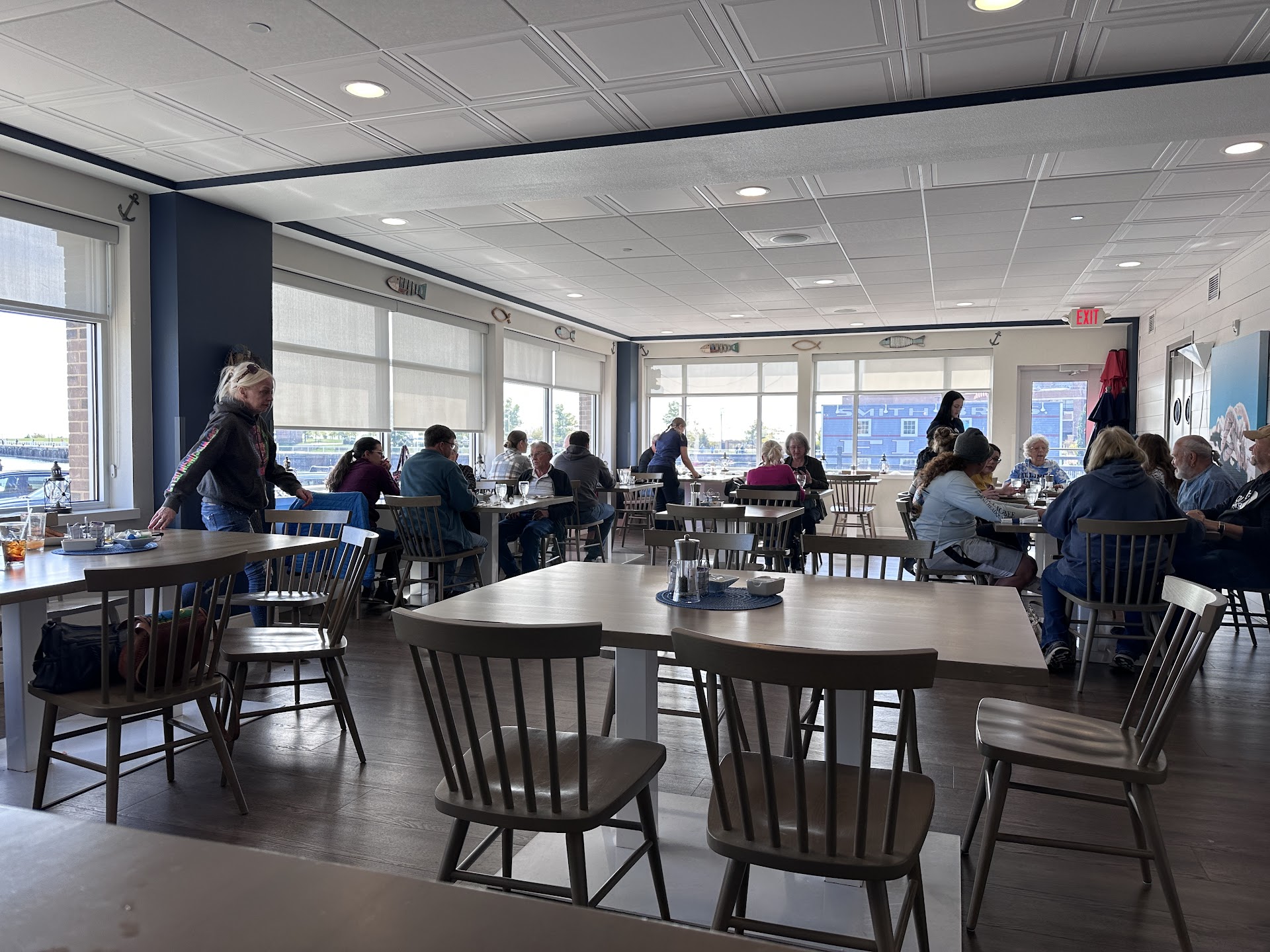 Staff was friendly, bartender was a nice guy and thanked us for the business before we were served any drinks. Bloody Marys were good, and came with a beer side (the way it ought to be!). Bar area was modern and very clean. Excellent view of the harbor/lake from the bar seating.