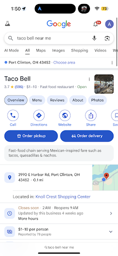 Read moreGreat T-Bell. They know what's up but taco bell as a whole has lost its way. If you were born before 2005 the Taco Bell you know and love is dead. I used go here and get more food than I could eat for $5 in highschool. Now you can't even get three bean burritos for that price. This is a clear sign of the slow decline of the American Empire. I mourn for the loss of what we once had at Taco Bell, and none of the "Y2K" menu items are going to bring that back. This used to be a place you use could stumble into extremely drunk and use your pocket change to get a decent sized midnight snack. Now you can't get out of here satiated for less than $10. I miss the old Taco Bell. Atmosphere gets one star because the vibes are gone. I weep for this new generation. If someone ran for president with the sole promise to restore Taco Bell to its former glory, I would vote for them in...