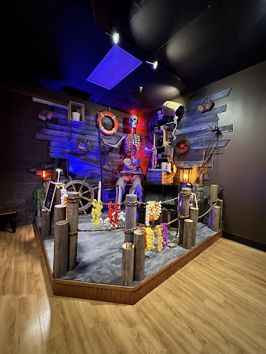 Our visit was a last minute date night opportunity when we realized we were suddenly kid free for the night. Both my husband and I had been wanting to try this place out for awhile, and I’m so happy we did! Our bartender was Ashley, and she was phenomenal! She was so friendly and laidback. The drinks were superb (some of which she created herself for the menu). And I loved that the drink cups were even themed with the drink names. We ordered the Bikini Wax (served in a high heel shoe), Mai Tai, and Zombie (served in a skeleton type tiki mug). One drink was so strong (which I was warned of in advance), that I’m pretty sure I screwed the math up on her tip when we went to pay. I’ve got you next time, girl! 💗 Thd food was super yummy as well. We ordered chicken skewers and jalepeno poppers. We had such an amazing experience here. It’s a nice change to have an adults only atmosphere where we were launched into a fun tiki themed environment....