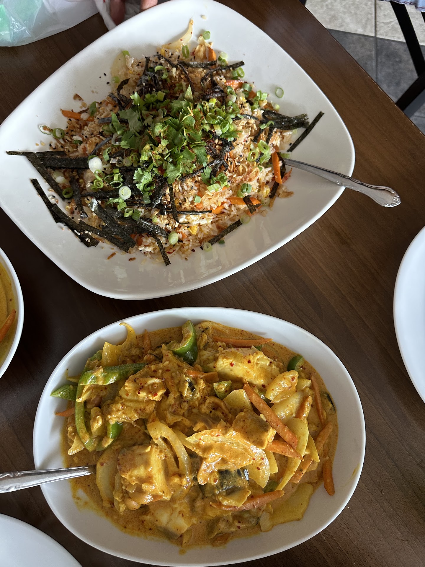 update* I have finally tried A Thai Cafe. Apparently all to-go orders must be placed online now. They are very short-staffed. BUT everything we ordered was delicious! The curry fried rice has pineapple and the sweetness with the veggies was very tasty. The masaman curry was also very good; the rice was cooked perfectly and the vegetables were plentiful. However, the star was definitely the Pad Thai!!! So very tangy, sweet and delicious!! We enjoyed it so much for lunch, we ended up ordering more for dinner. My only complaint, my husband's complaint, rather, was that the hot spice level at lunch time was good and spicy, but was not spicy at dinner. Would be nice to have a little more consistency with the spice levels. Overall very happy and will definitely order again. Wish I could describe how the food is, as we have been looking forward to trying it since we found out you had reopened. Alas, I have no idea. I called to order and was left on the line... I finally got in the car to drive to A Thai Cafe to just order in person, but realized Cravings was on the way. So I went there. And ordered. And waited. And got our food. And drove home. Now we are eating it. And I am still waiting on the line for your employee to look down and remember they left me hanging. It has been...