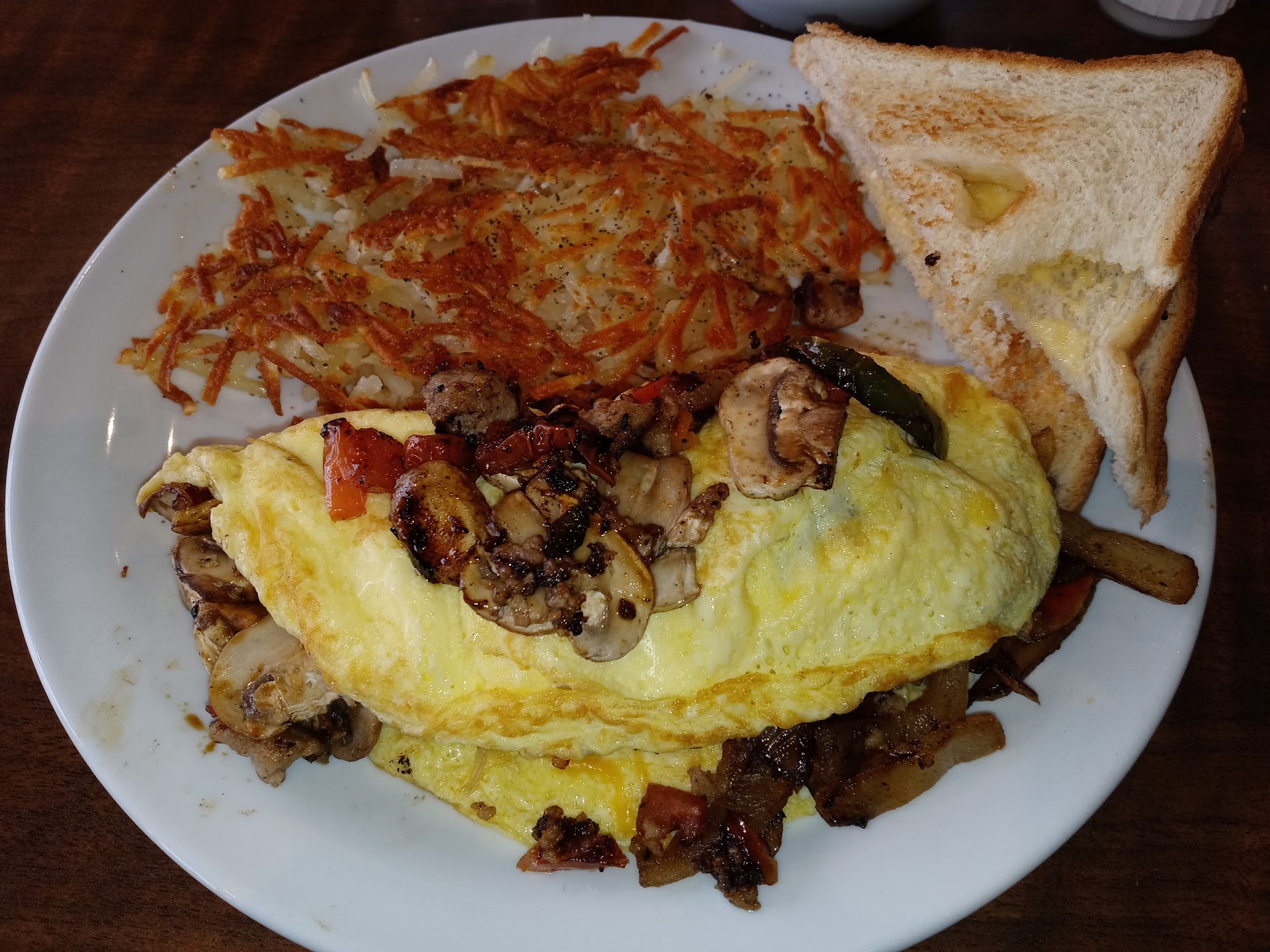 We waited a 5 minutes longer than we should (an issue when you are really hungry). When our waitress finally came to help us (an older lady) she pulled out her pad to take the order, and her hands and fingernails were dirty. She kept asking if my wife wanted cheese in her eggs, then questions about my meal.